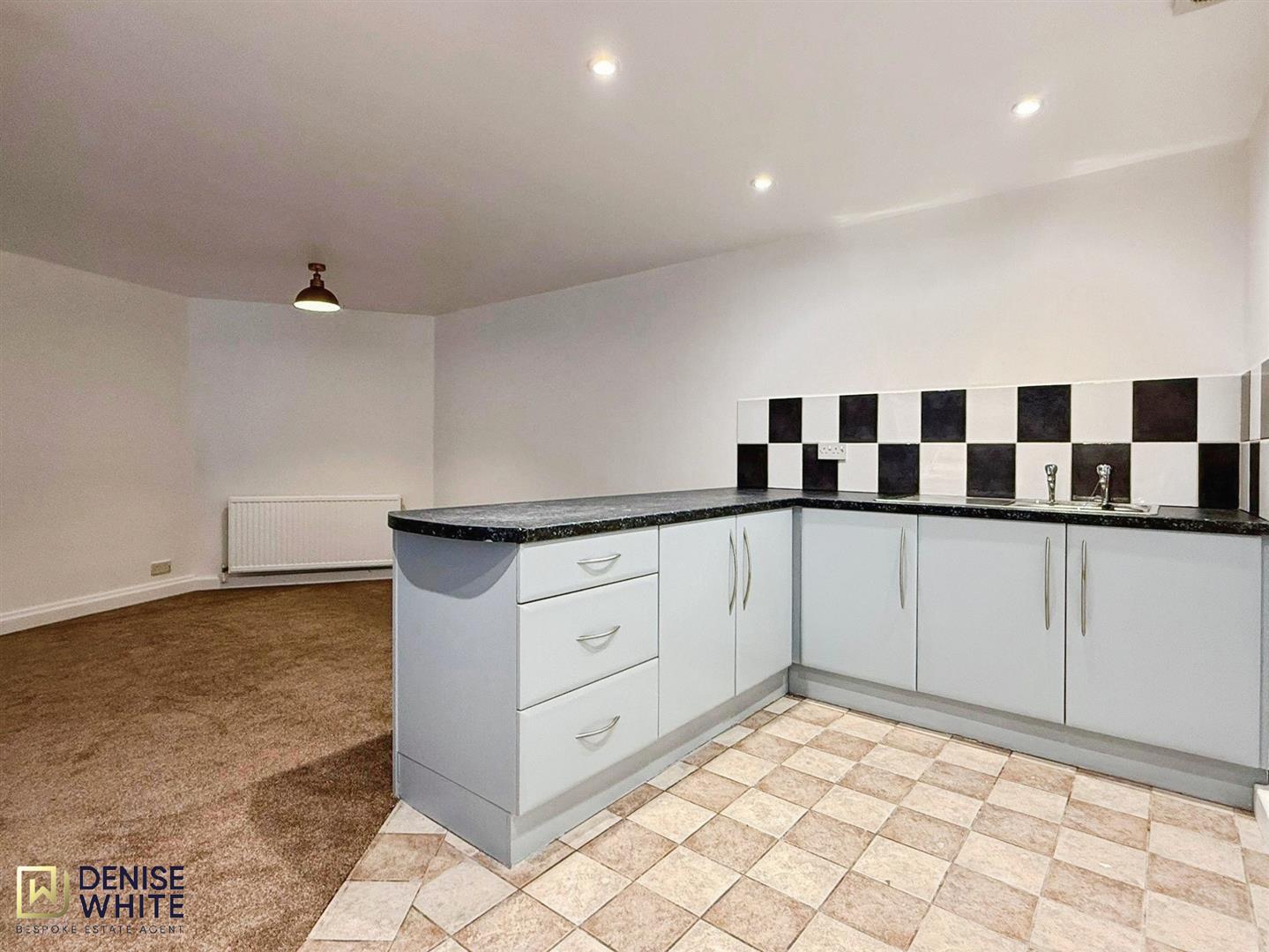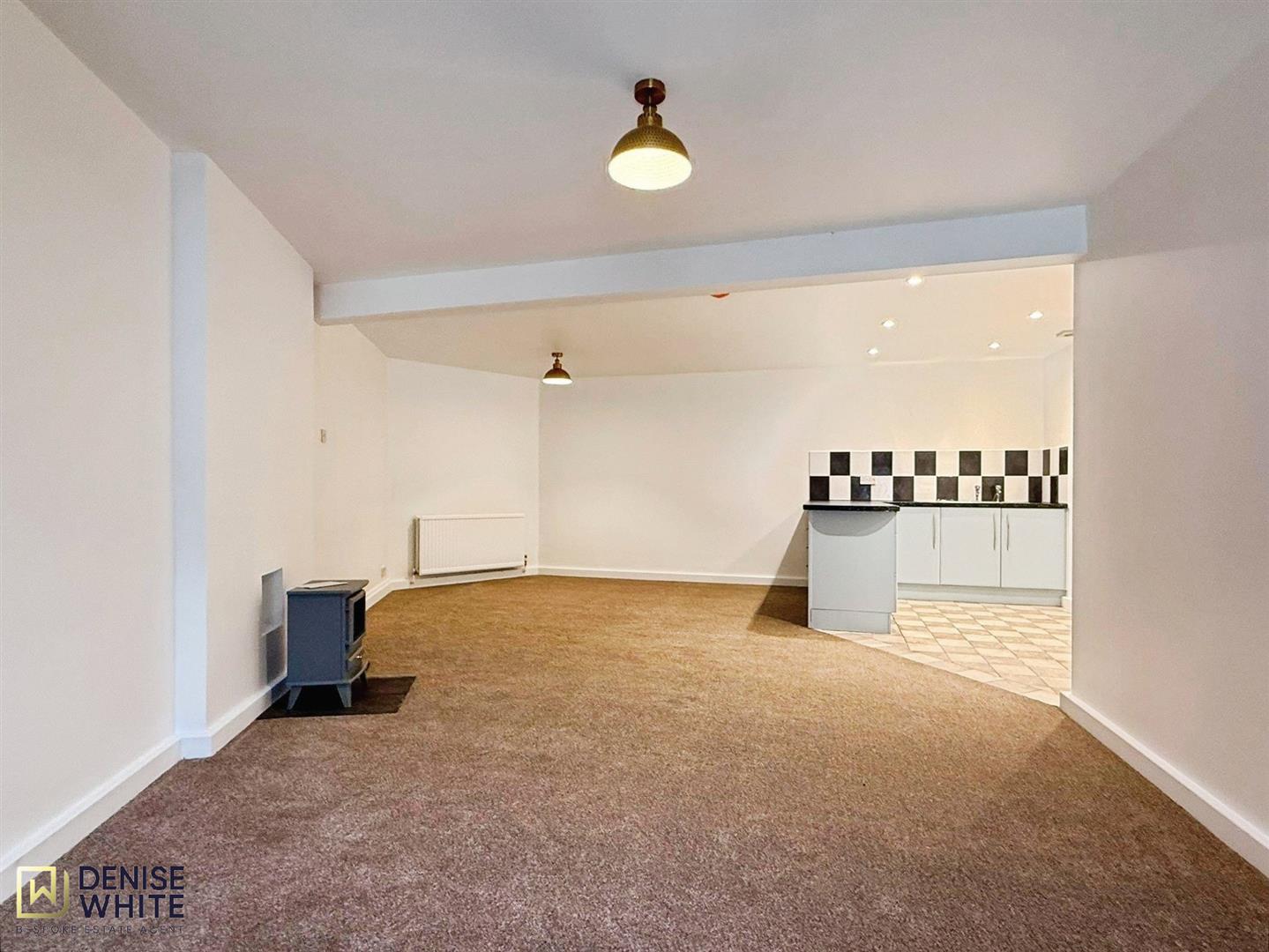 Open plan living room with kitchen - Carpet floor covering, Large uPVC windows to front aspect, radiator, light fitting.