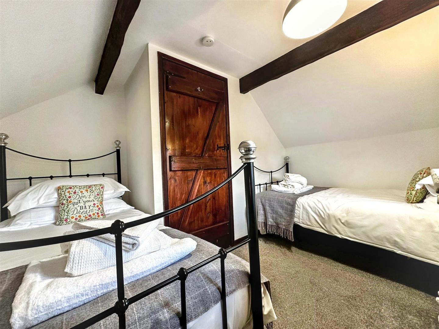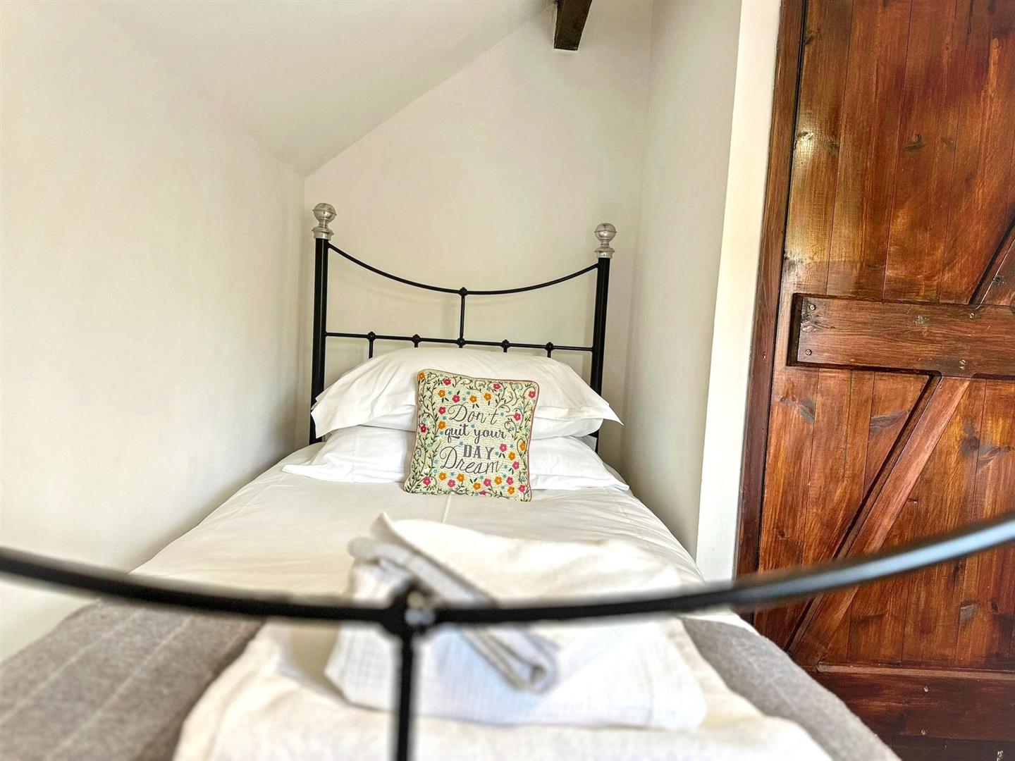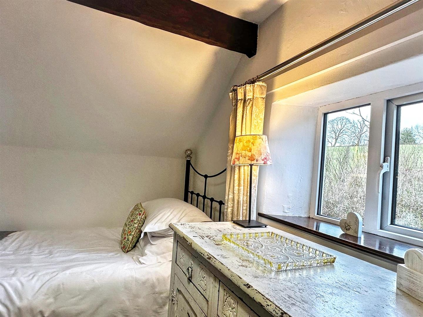 Upstairs, the property offers three bedrooms. The principal bedroom is a generous double overlooking the front aspect, enjoying peaceful village views. The second bedroom is also a comfortable double, again positioned to the front. The third bedroom is slightly smaller and would lend itself perfectly as a single bedroom, nursery or home office — ideal for those embracing remote working in a rural setting.