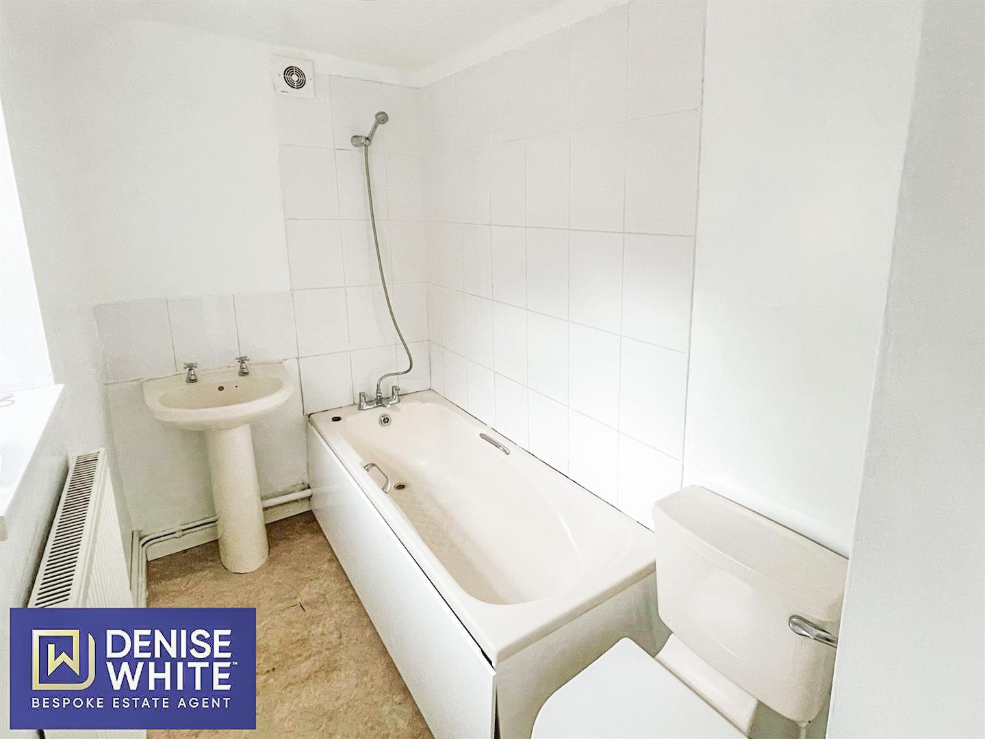 Radiator. Panelled bath with shower over. Low-level WC. Pedestal wash hand basin. uPVC double window to the side aspect.