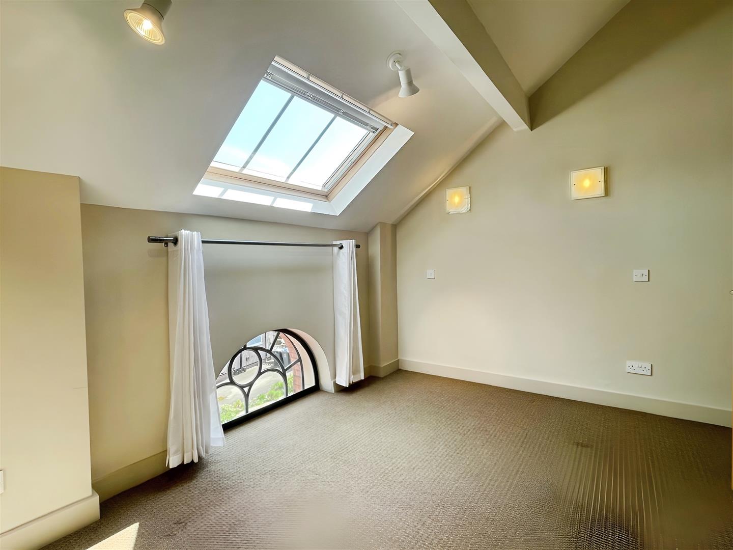 Fitted carpet. Wall mounted radiator. Gallery to double-height space with sliding/folding doors to form separate room. Double glazed skylight window. Ceiling lights.