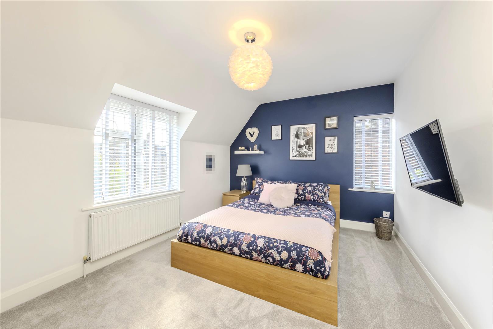 Fitted carpet. Large storage cupboard. uPVC double glazed window to the side aspect. uPVC double glazed arch window to the front aspect. Wall mounted radiator. Two ceiling lights. Loft access.