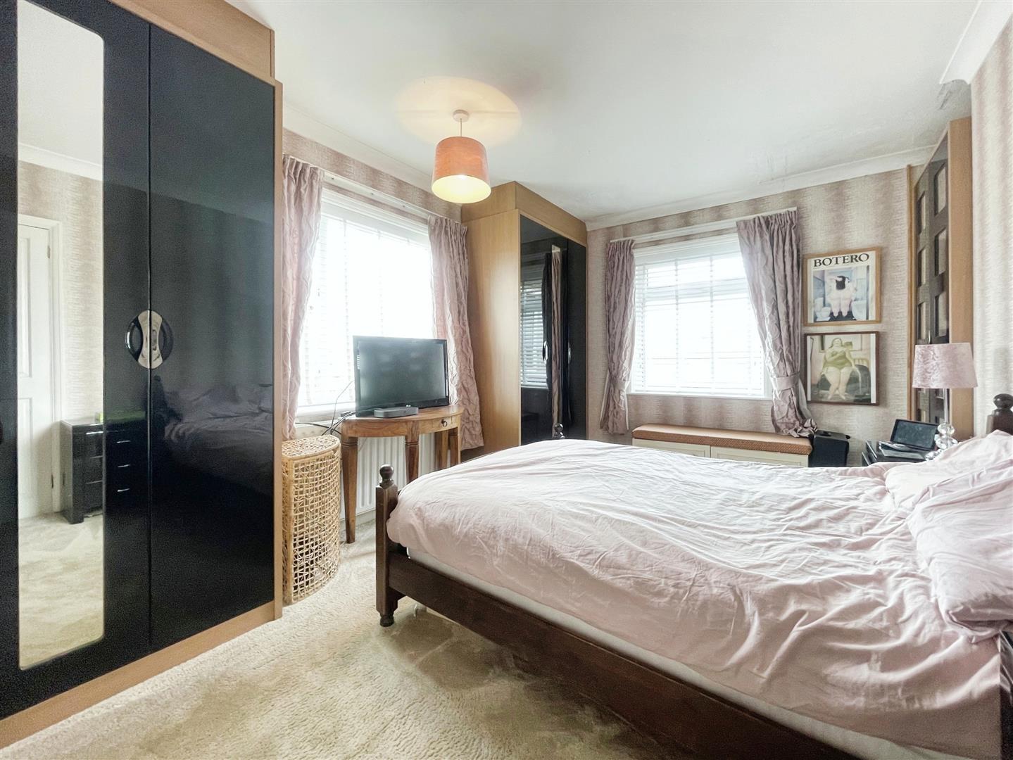 Upstairs, the landing leads to four good-sized bedrooms and two bathrooms. The main bedroom, located at the front, features fitted wardrobes and dual aspect windows that let in plenty of natural light. One of the larger rear bedrooms is uniquely designed with a bedroom area and a separate area which can be used as a dressing room, complete with inset fitted wardrobes. Bedroom three also includes inset fitted wardrobes, while the fourth bedroom offers flexibility as a good sized single bedroom or office space. The family bathroom boasts a stylish suite with a freestanding bath, and a separate shower room adds practicality for busy family life.