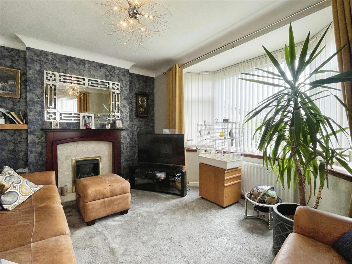 At the front, a cosy lounge with a large bay window and a beautiful mahogany fireplace, complete with a gas fire and marble inset and hearth, creates a welcoming atmosphere. An additional sitting room spans the length of the property, featuring patio doors that lead to the rear garden.