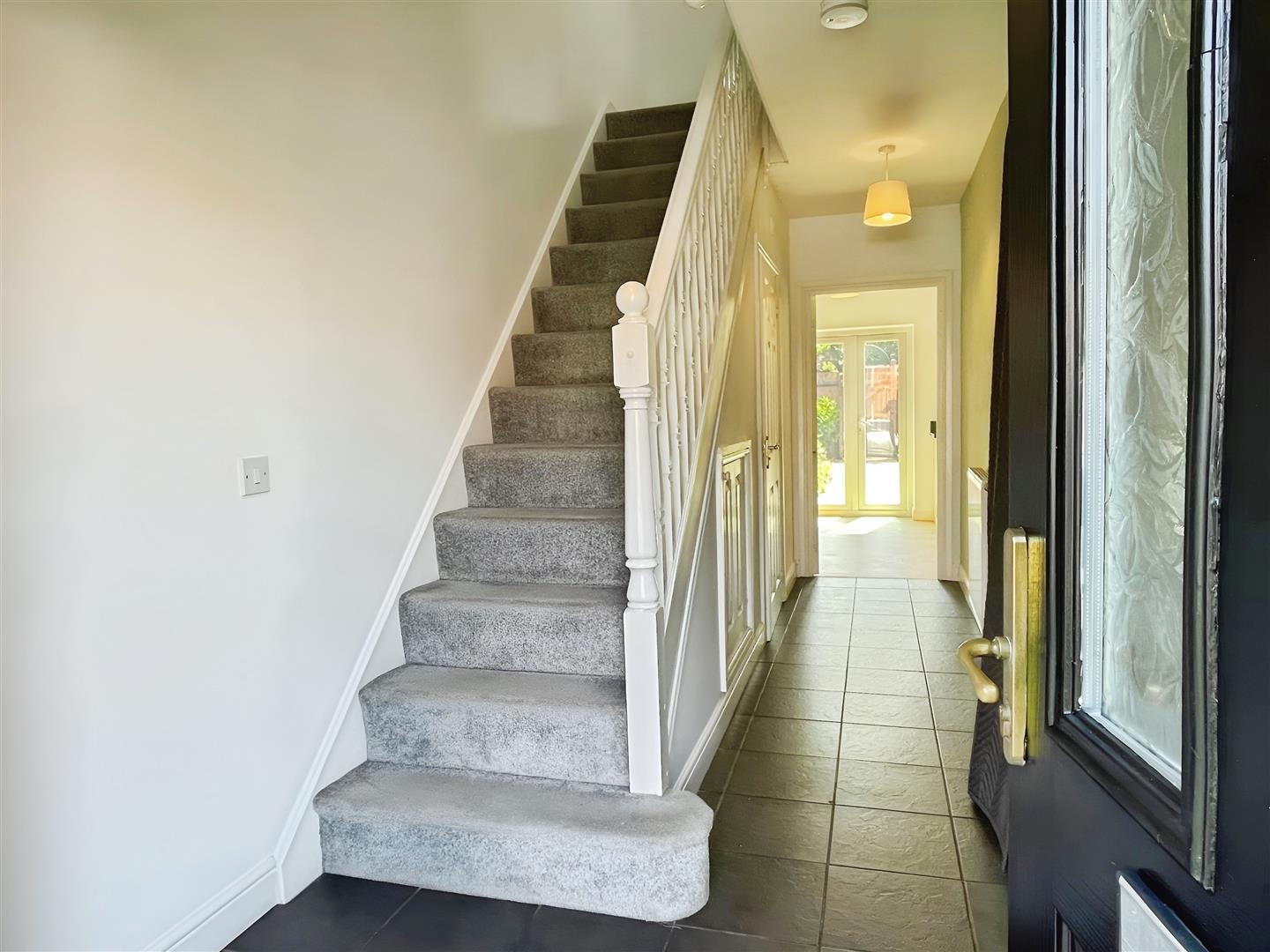 Internally, the home features neutral interiors, offering a blank canvas throughout. On the ground floor, a generous entrance hall leads to a handy WC and a well-sized kitchen diner with French doors opening onto the rear garden—an ideal space for entertaining or future modernisation.