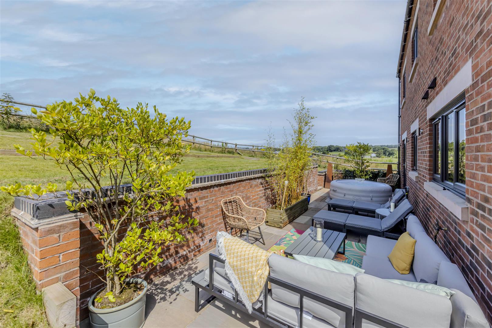 To the front is a paved driveway providing off road parking for multiple vehicles and leads to an integral garage. To The rear is a tiered garden with a patio area leading from the French doors out of the dining area and steps leading to a large lawn beyond which backs onto fields.
