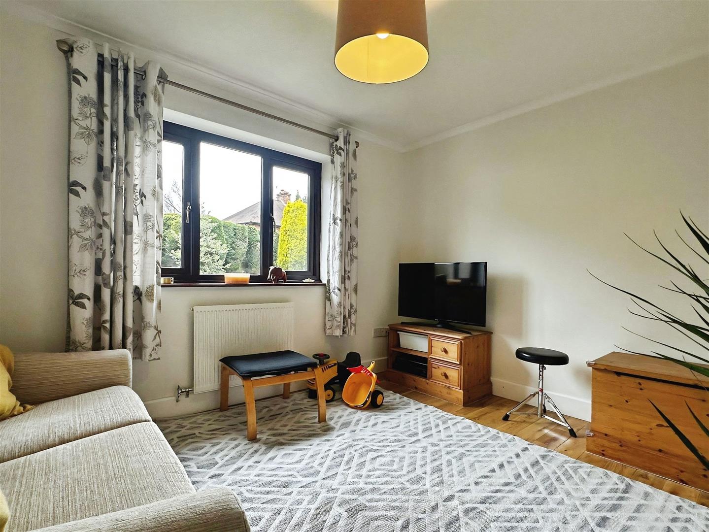 To the rear, the property enjoys a delightful private and enclosed garden, providing a peaceful retreat ideal for both relaxation and entertaining. Laid predominantly to lawn, the garden is beautifully framed by well-established shrubs, offering a good degree of privacy. There is ample space for outdoor dining, children’s play and enjoying the warmer months, making it a wonderful extension of the living accommodation.