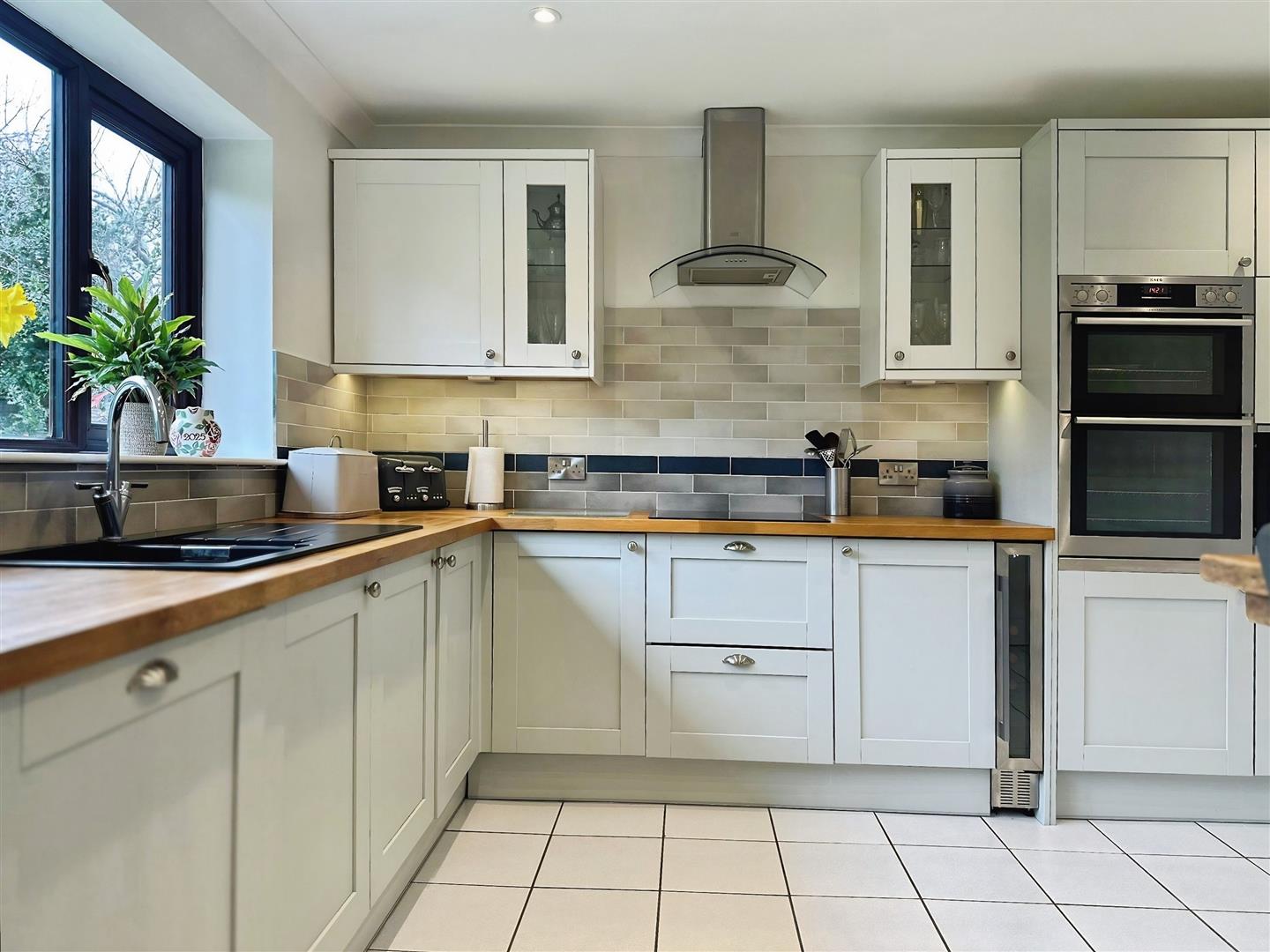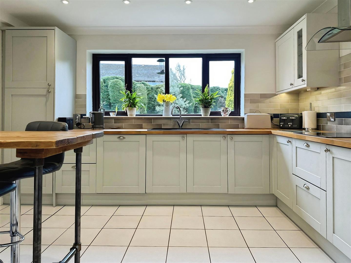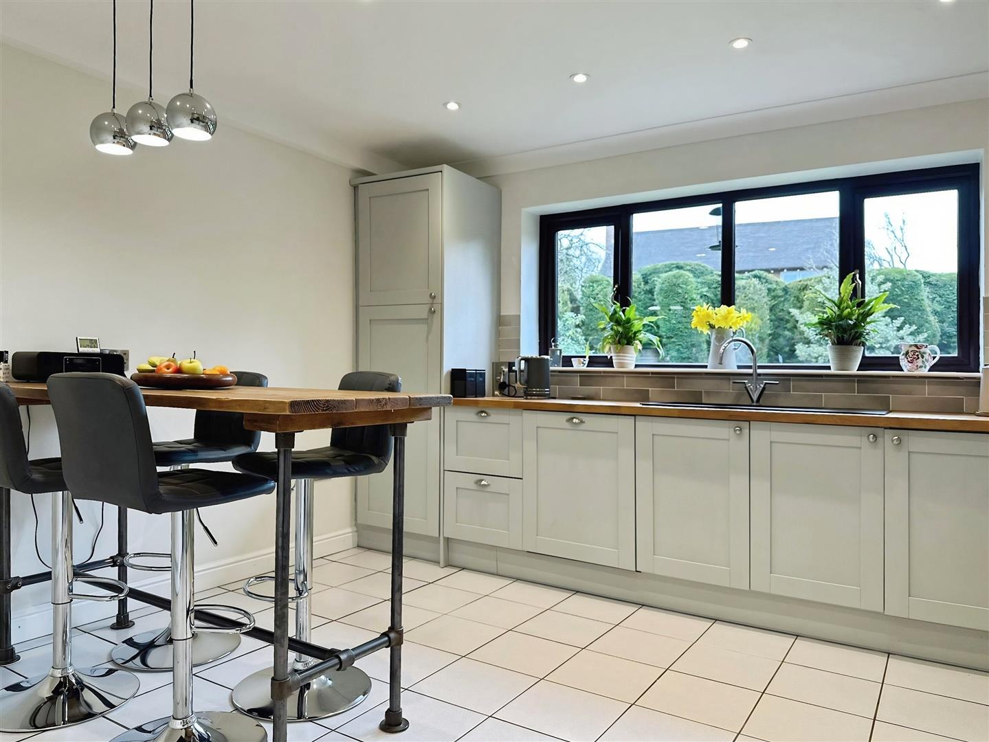 The Kitchen overlooks the garden and has been recently refitted with a stylish range of modern units, complemented by integrated appliances and a breakfast bar, ideal for informal dining. A useful Utility Room sits just off the Kitchen, providing additional storage and workspace, and leads through to a further versatile reception room, perfectly suited as a Study, Snug or Playroom.