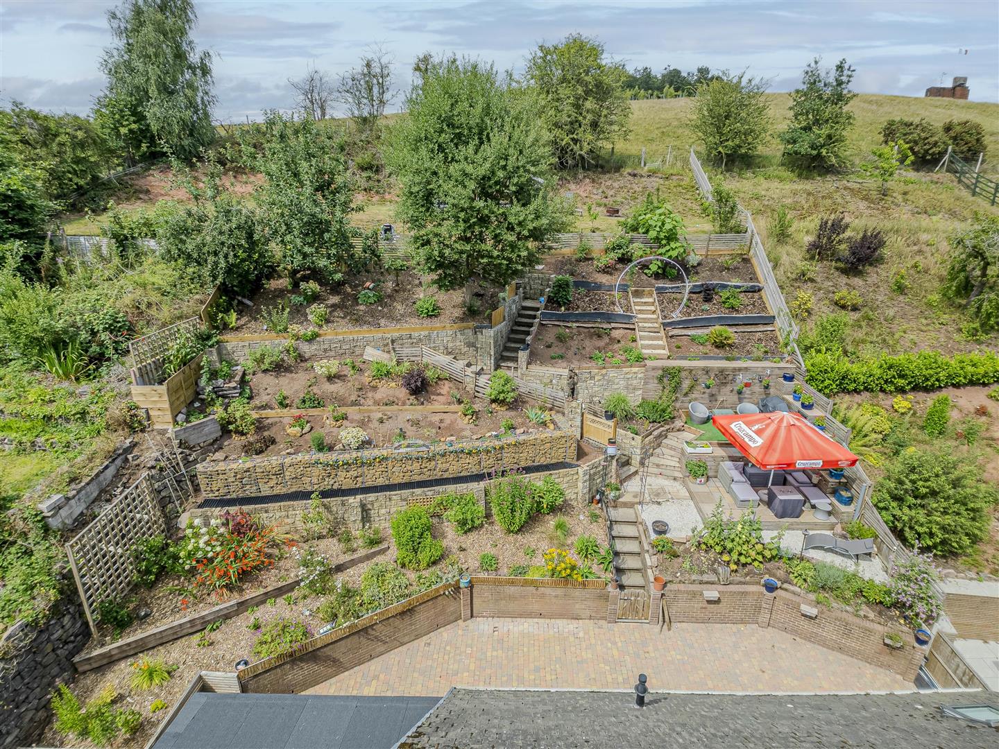 To the front of the property is a gated driveway providing off road parking for multiple vehicles which leads to a large integral garage. There is a patio area at the front of the property with slate chippings. Gated access to the side of the property leads to the a large rear paved patio area with access into the garage, utility, and kitchen diner. Steps lead through a tiered garden with mature shrubs and perennials. There is a stone seating area with astroturf barbeque area behind. At the top of the garden is a large lawned paddock with lovely views of surrounding countryside.