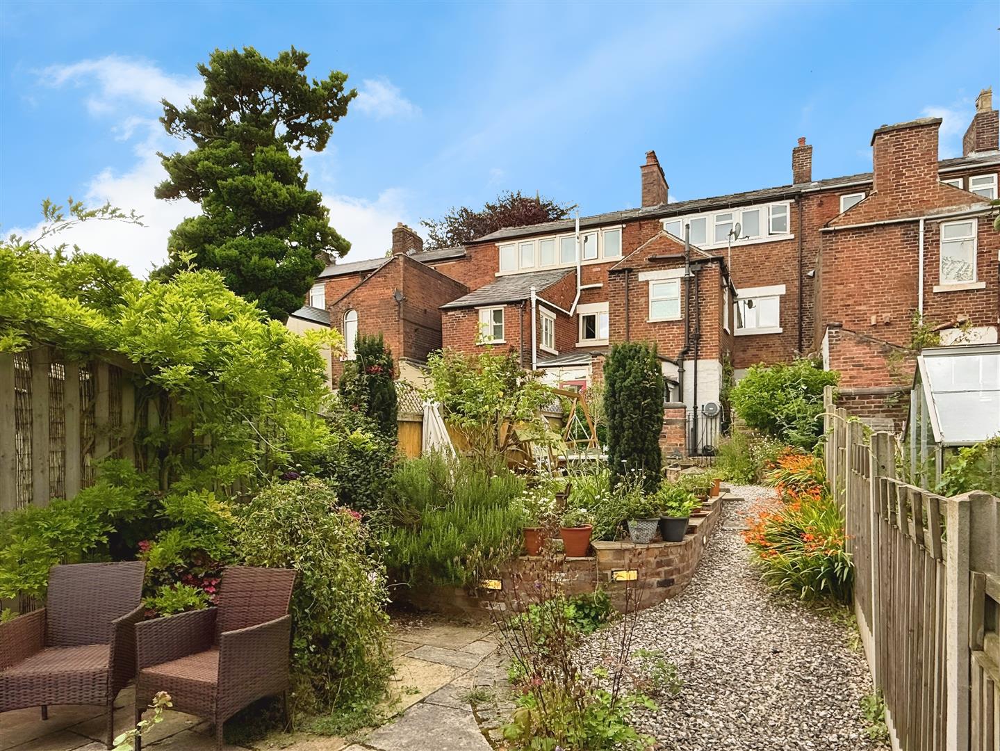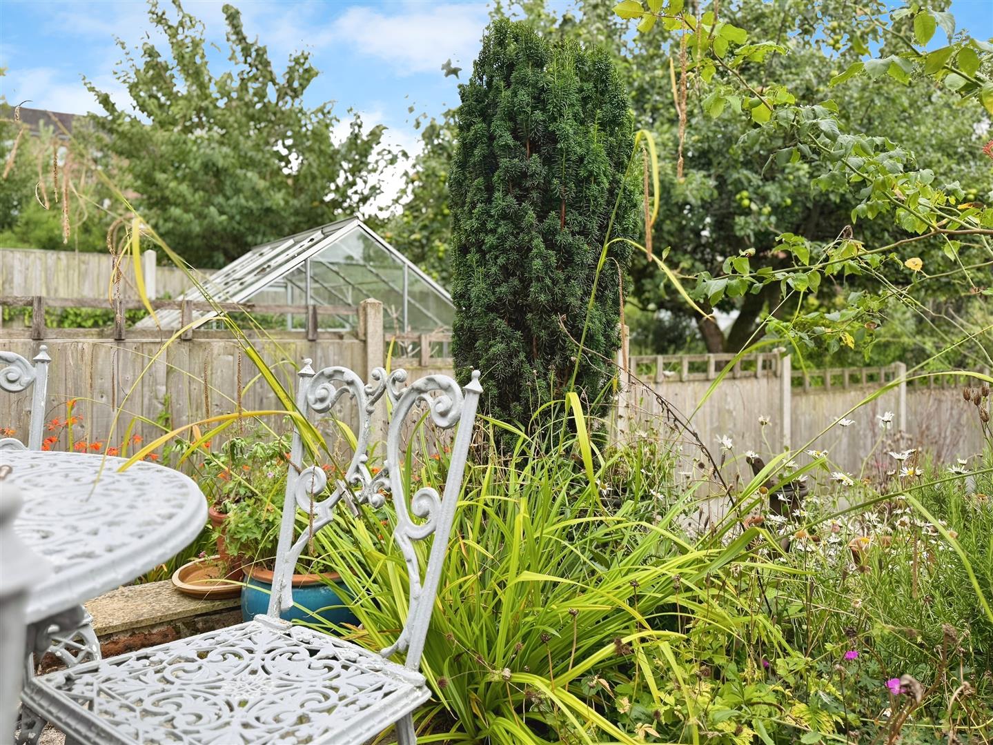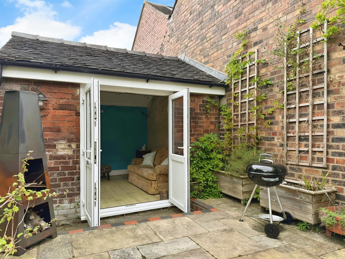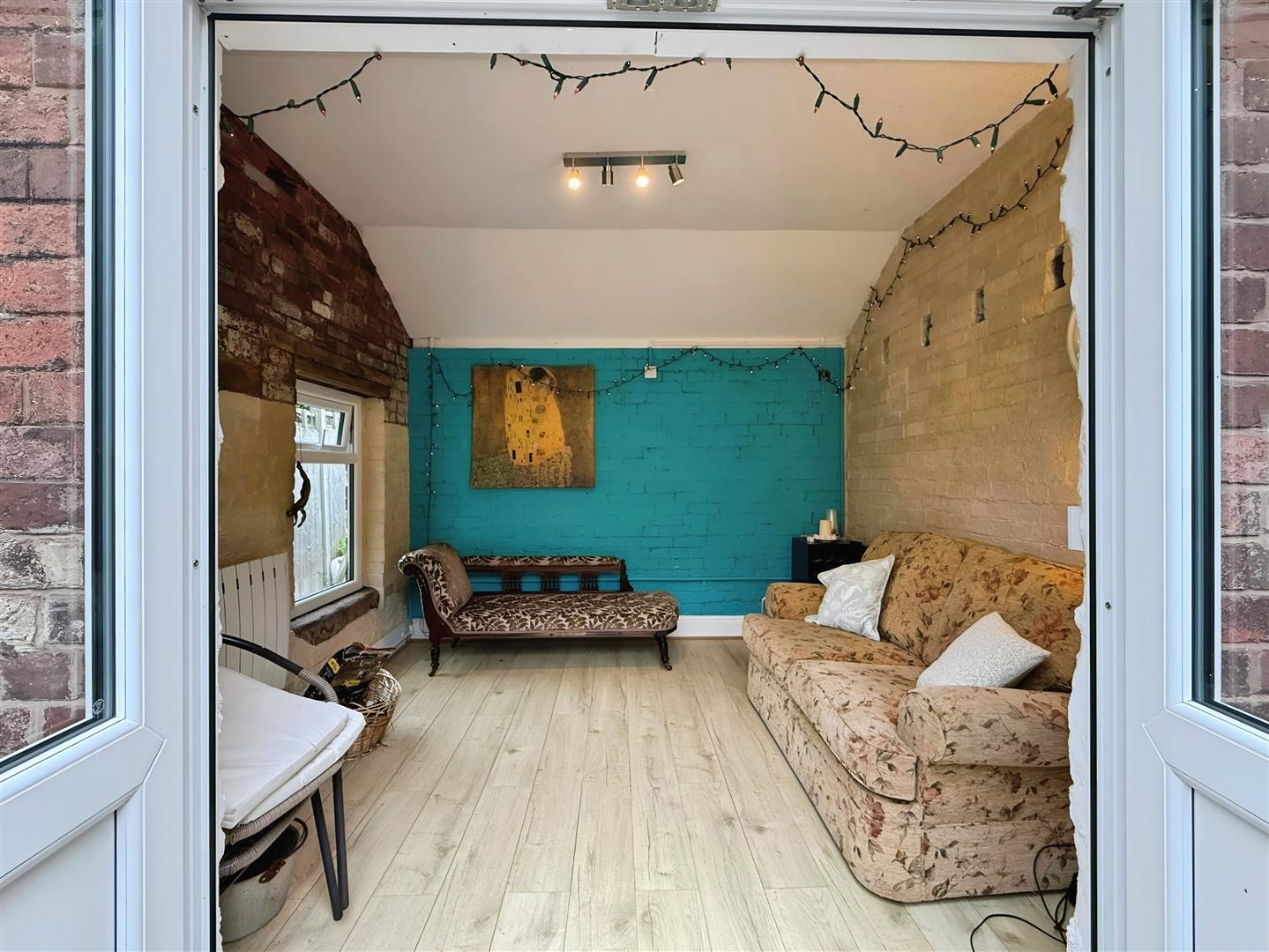 The rear garden is thoughtfully landscaped, with a variety of mature plants and greenery providing a pleasant and private setting. A brick-built outhouse at the bottom of the garden offers excellent potential – ideal as a social space, bar, games room, or practical storage. The garden is directly accessed from the living area, making it a useful and versatile extension of the home.