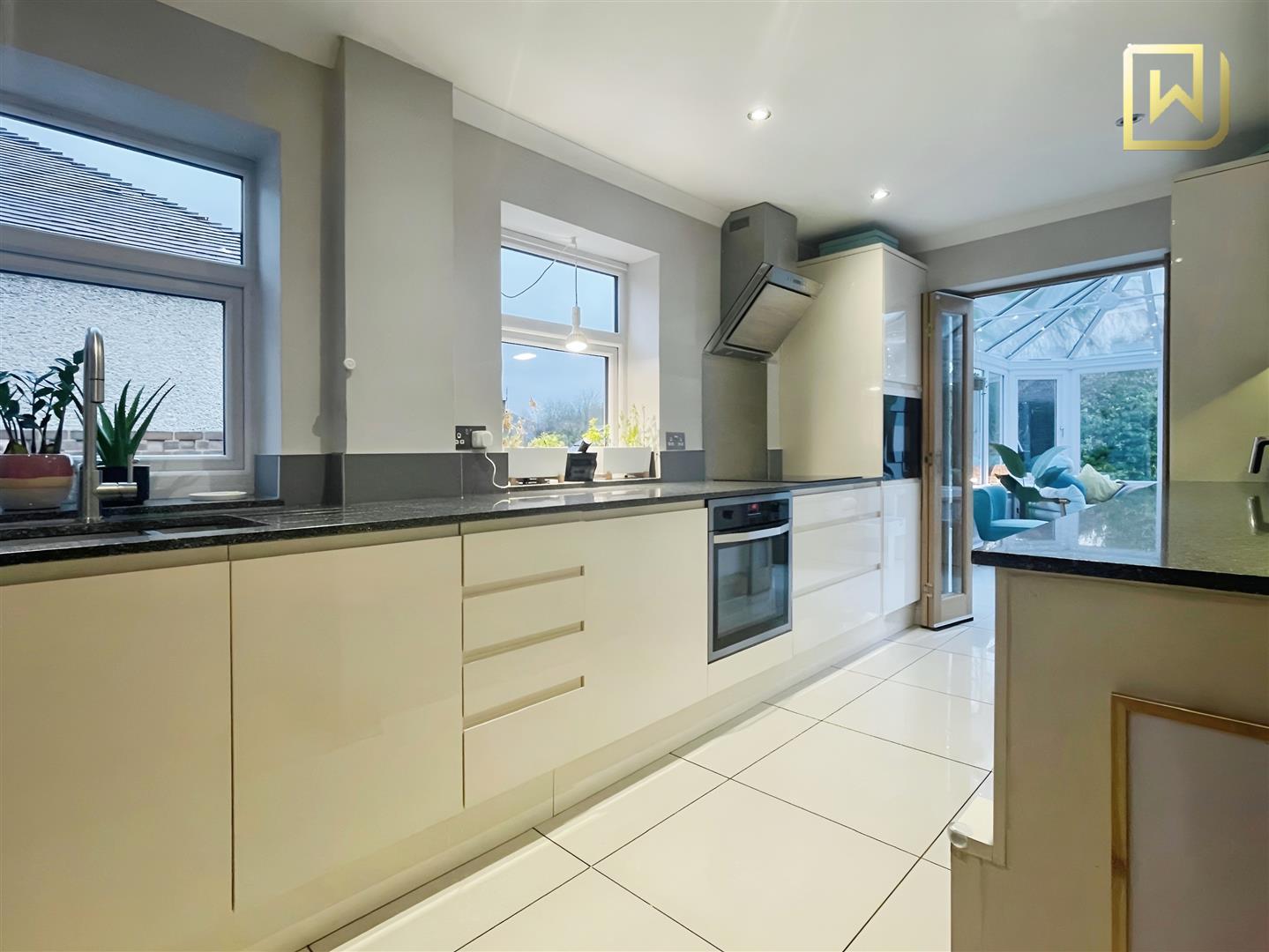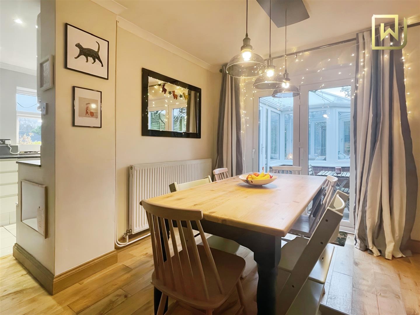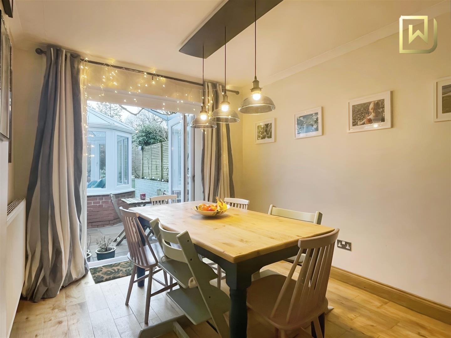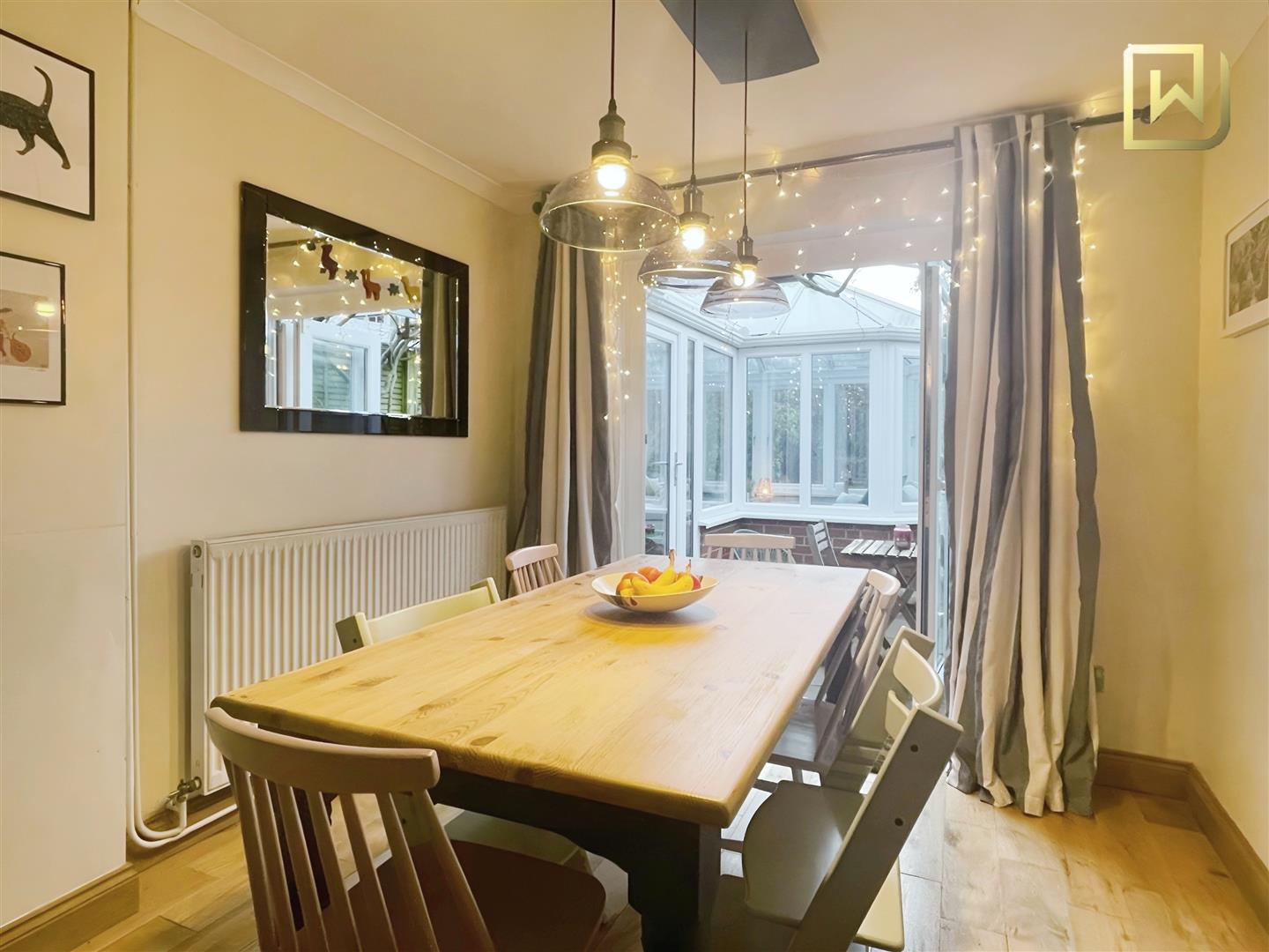 This stunning property features three large reception rooms as well as a spacious and elegant entrance hall currently used as a work space but could be further enhanced to provide ample storage solutions. The living room is located at the front of the property and features a bay window allowing in ample light. The dining room boasts bifold doors creating a connection between indoors and outdoors, ideal for al fresco dining. The kitchen features modern gloss cabinets with granite work surfaces above as well as a range of integrated appliances. Folding doors lead onto the conservatory which is bathed in natural light and provides direct access to the rear garden. There is also a downstairs WC for added convenience.