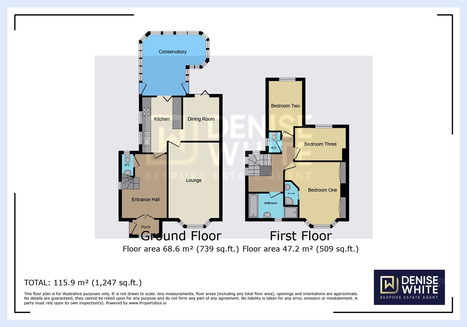 Please note that all areas, measurements and distances given in these particulars are approximate and rounded. The text, photographs and floor plans are for general guidance only. Denise White Estate Agents has not tested any services, appliances or specific fittings — prospective purchasers are advised to inspect the property themselves. All fixtures, fittings and furniture not specifically itemised within these particulars are deemed removable by the vendor.
