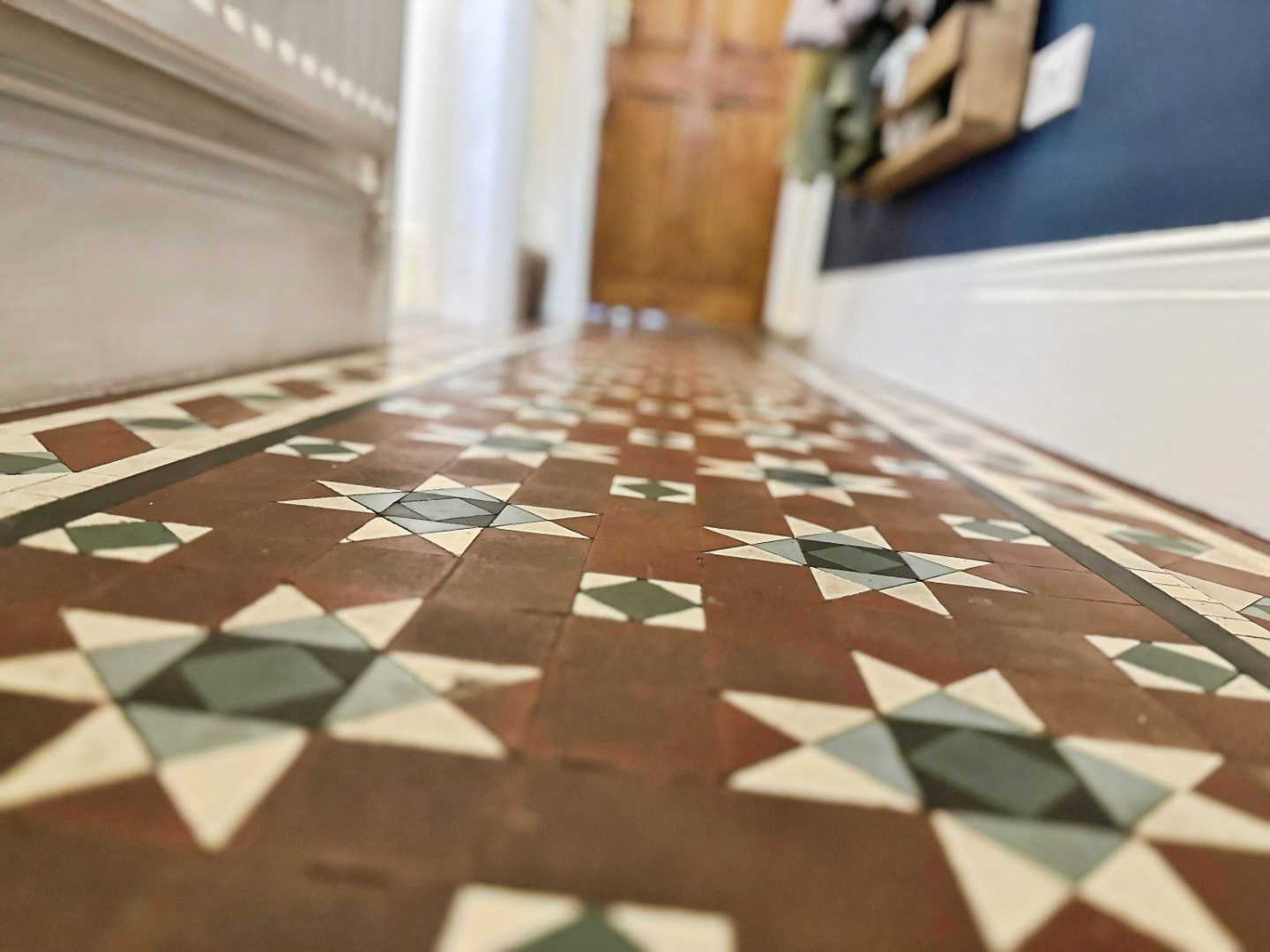 Composite entrance door to the front aspect. Minton tiled flooring. Radiator. Picture rail. Coving to the ceiling. Ceiling light. Stairs leading to the first floor. Doors leading into: –
