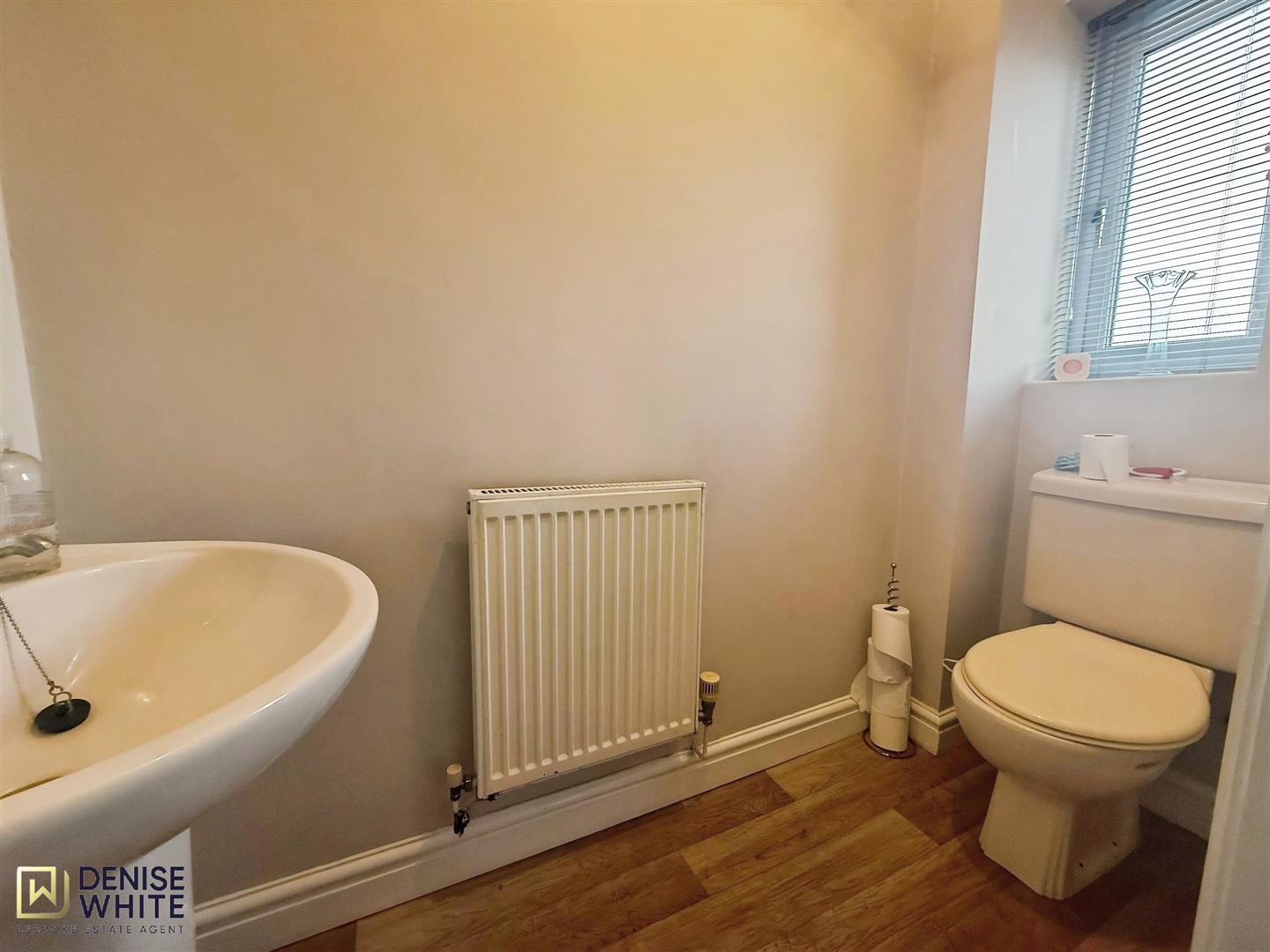 Laminate flooring. WC. Pedestal style wash hand basin. Wall mounted radiator. Obscured UPVC double glazed window to the front aspect. Ceiling light.