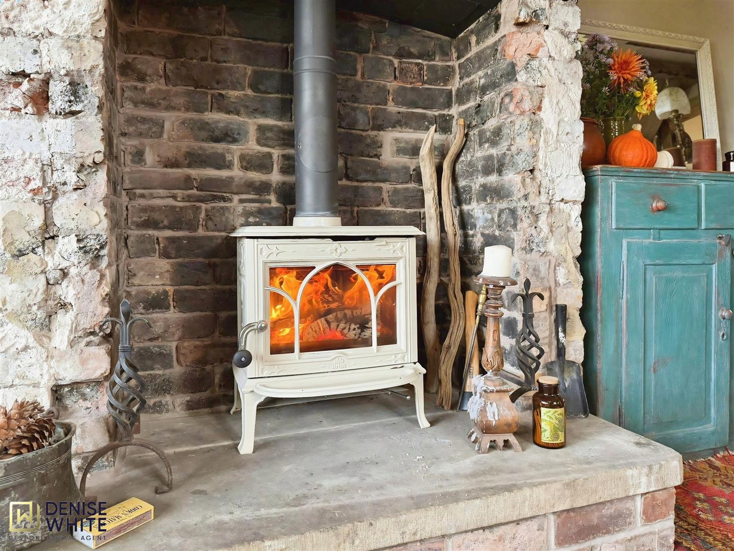 Wooden flooring. Wall mounted radiator. Brick fireplace. Log burner. Double glazed windows to the side and rear aspect. Stair access leading to the first floor accommodation. Ceiling light.