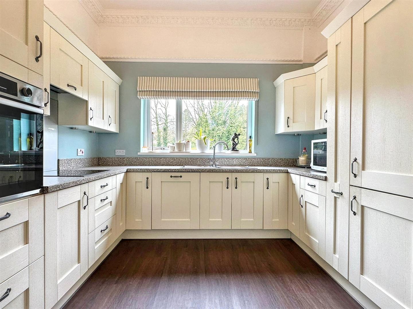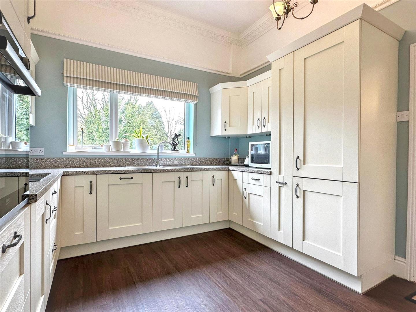 Fitted with range of shaker style wall and base units incorporating work surfaces over. Integrated fridge freezer, oven, electric hob, integrated dishwasher, stainless steel drainer style sink unit with mixer tap above. LVT flooring. Radiator. uPVC window to the rear aspect. Door to the side aspect. Picture railing. Wall lights. Ceiling lights.