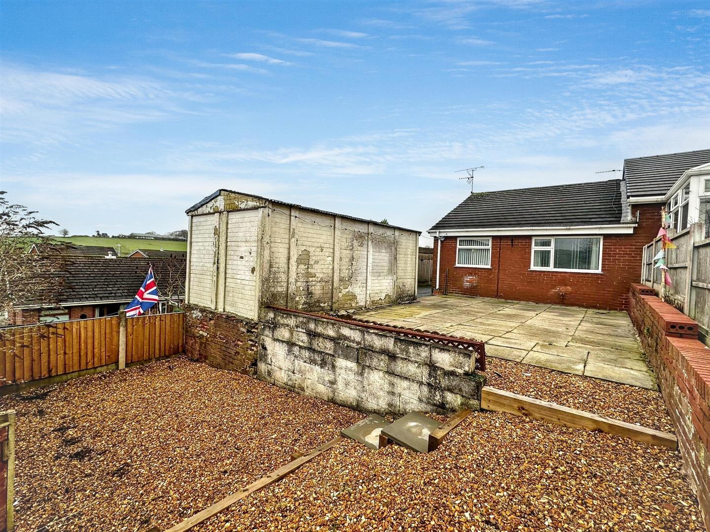 Externally, the property offers off-road parking for two vehicles and a low-maintenance gravelled front garden with paved access and gated entry to the side. To the rear is a further low-maintenance gravelled garden, enjoying open views across fields beyond. A detached single garage provides additional storage or parking for a smaller vehicle.