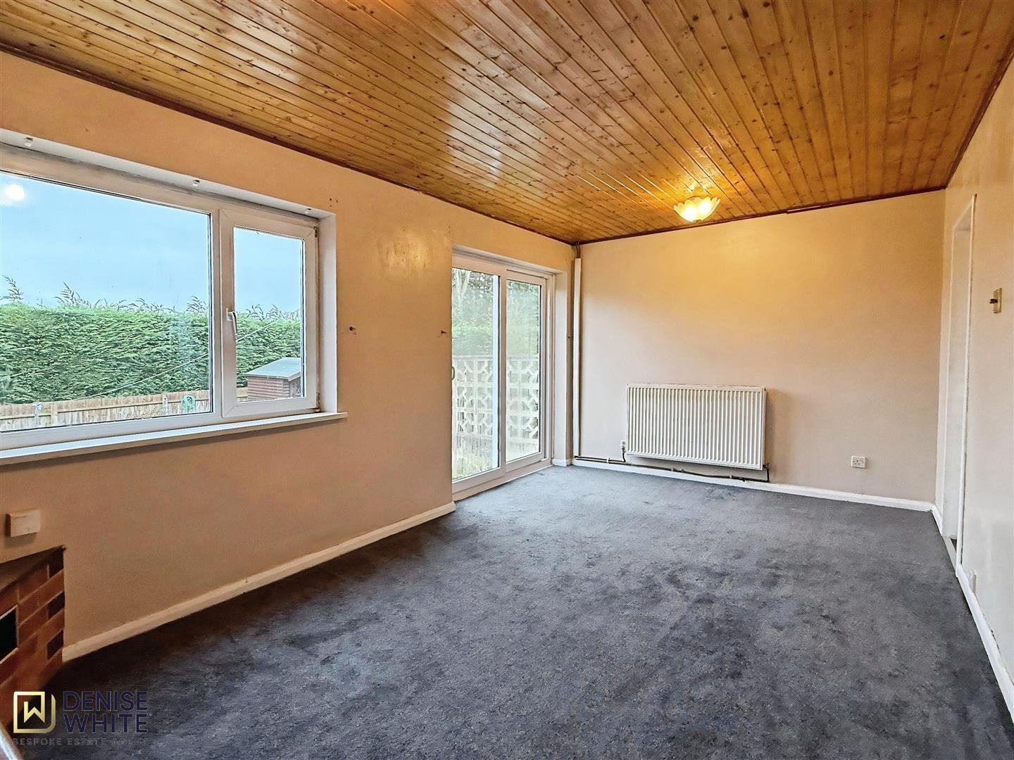 Fitted carpet. Wall mounted radiator. Fireplace. UPVC double glazed window to the rear aspect. Sliding doors leading to outside. Ceiling light.