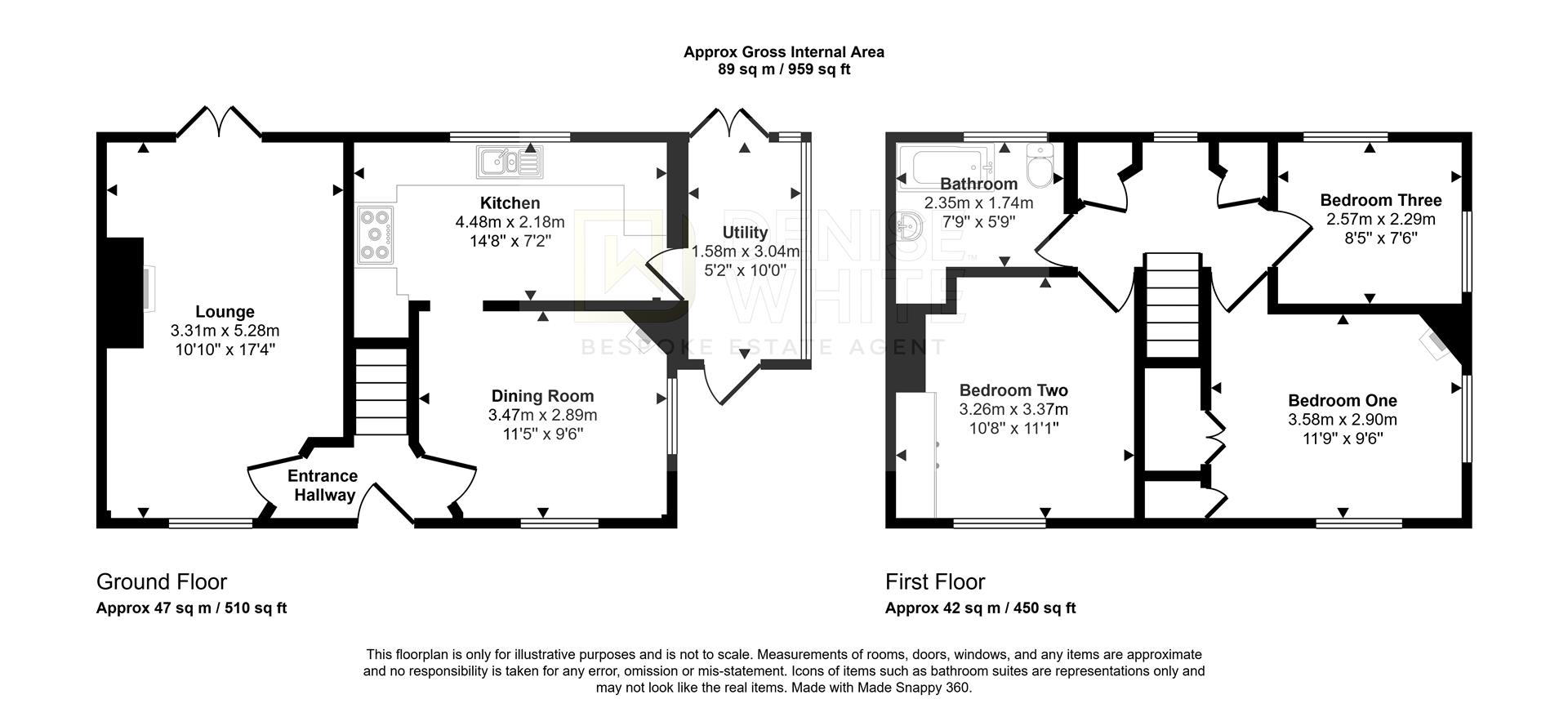 Please note that all areas, measurements and distances given in these particulars are approximate and rounded. The text, photographs and floor plans are for general guidance only. Denise White Estate Agents has not tested any services, appliances or specific fittings — prospective purchasers are advised to inspect the property themselves. All fixtures, fittings and furniture not specifically itemised within these particulars are deemed removable by the vendor.