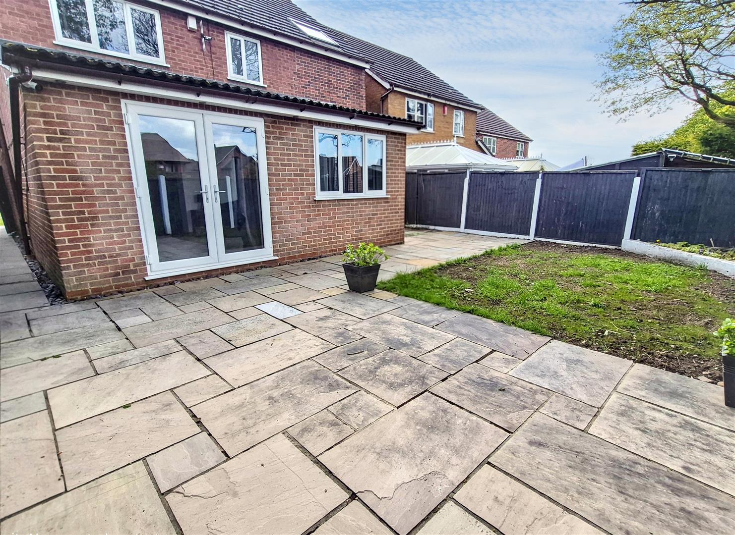 To the rear of the property there is a private and enclosed garden comprising of a paved patio seating area and lawn, designed with practicality and easy-maintenance in mind, providing the perfect space for alfresco dining and entertaining, as well as a safe and secure environment in which children can play and pets can roam freely.