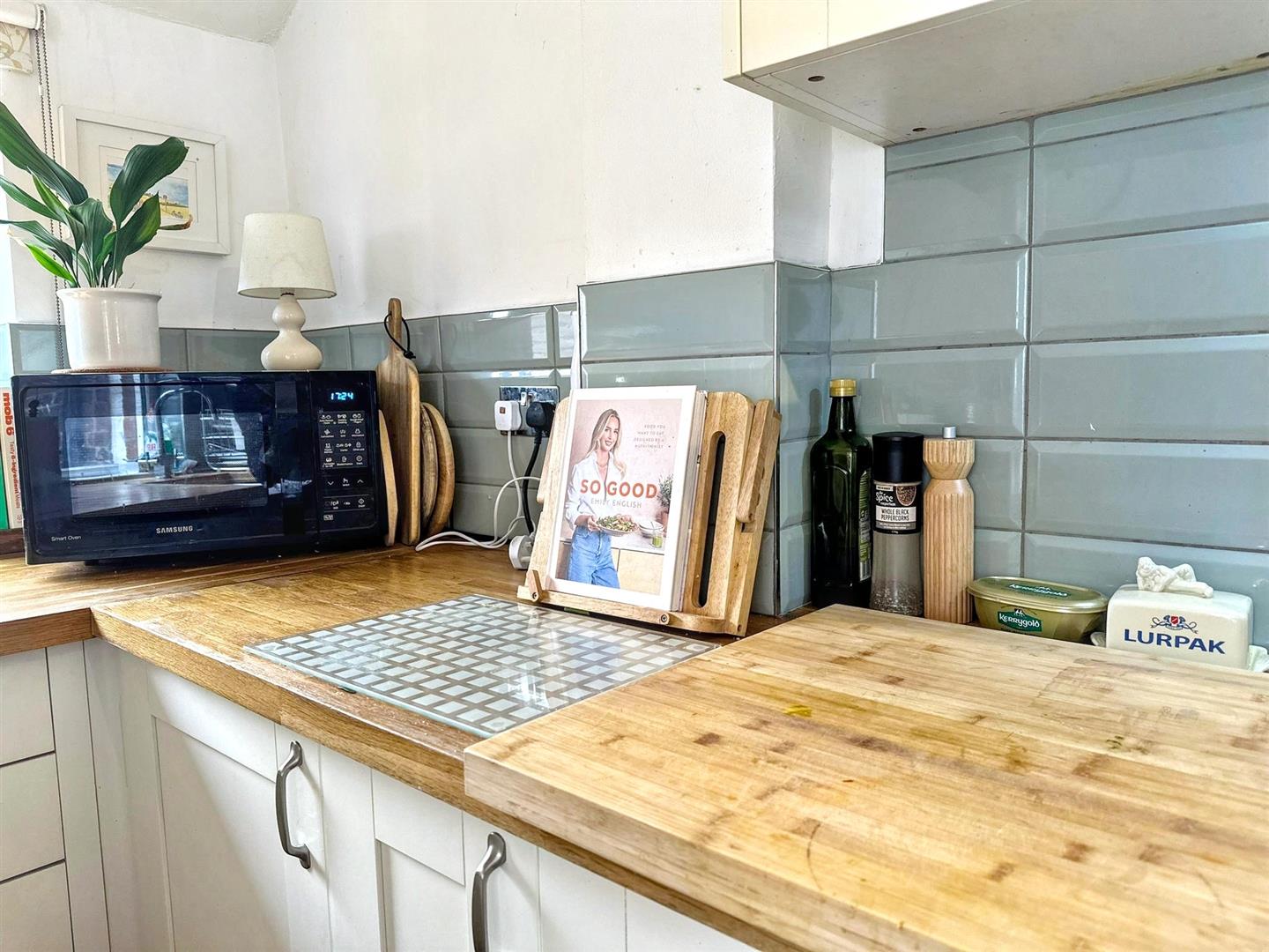 Internally, the accommodation begins with a well-proportioned dining room to the front of the home, providing an inviting space for everyday dining. This leads through to a bright and airy living room, which enjoys direct access to the rear yard and flows seamlessly into the kitchen. The kitchen is fitted with attractive shaker-style cabinetry, butcher block worktops and a classic ceramic Belfast sink, creating a timeless and practical space.