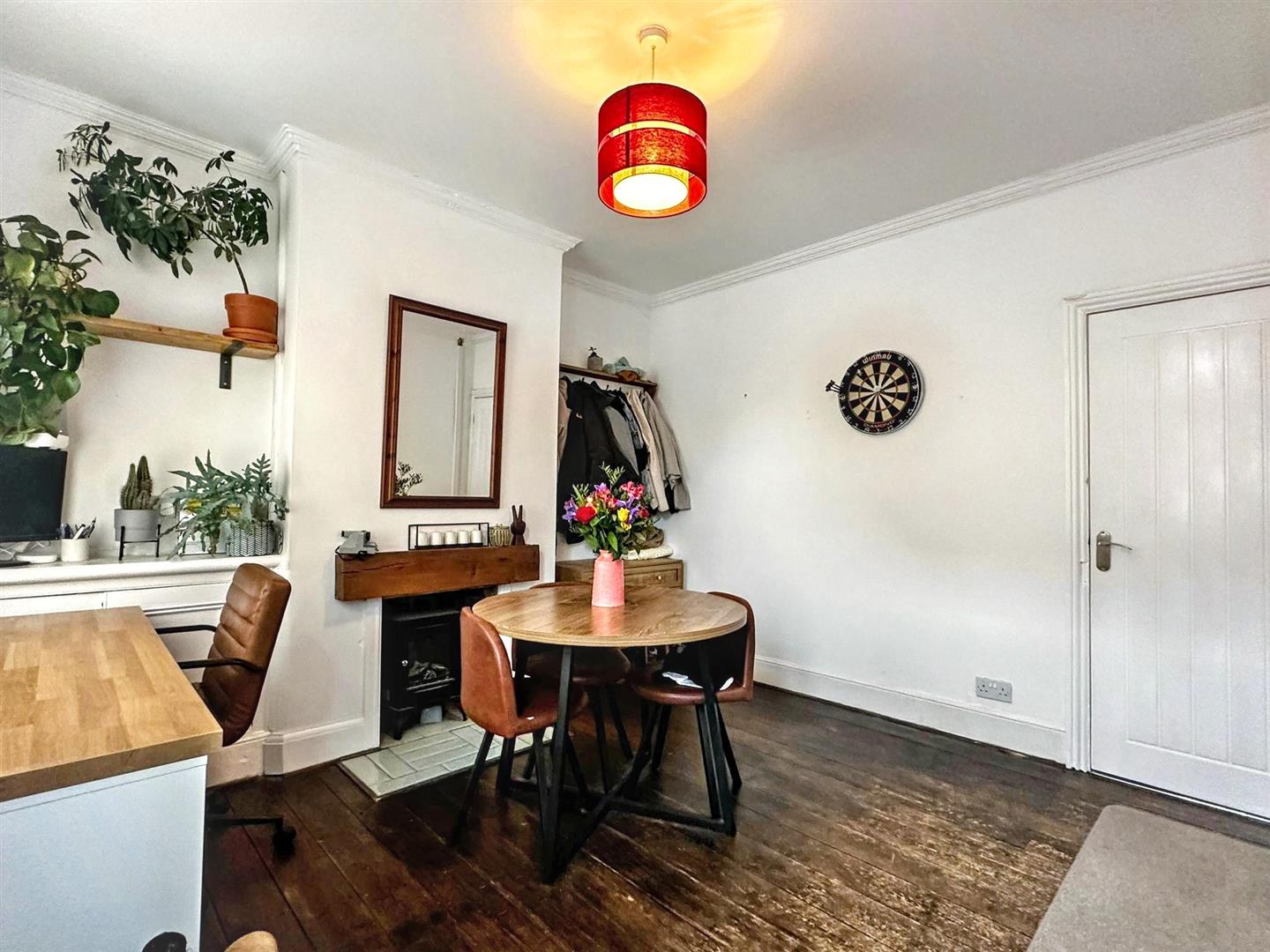 Fitted carpet. Wall mounted radiator. Gas fire. Access to cellar. Open plan access into kitchen. UPVC double glazed door leading to outside. Stair access leading to first floor accommodation. Ceiling light.