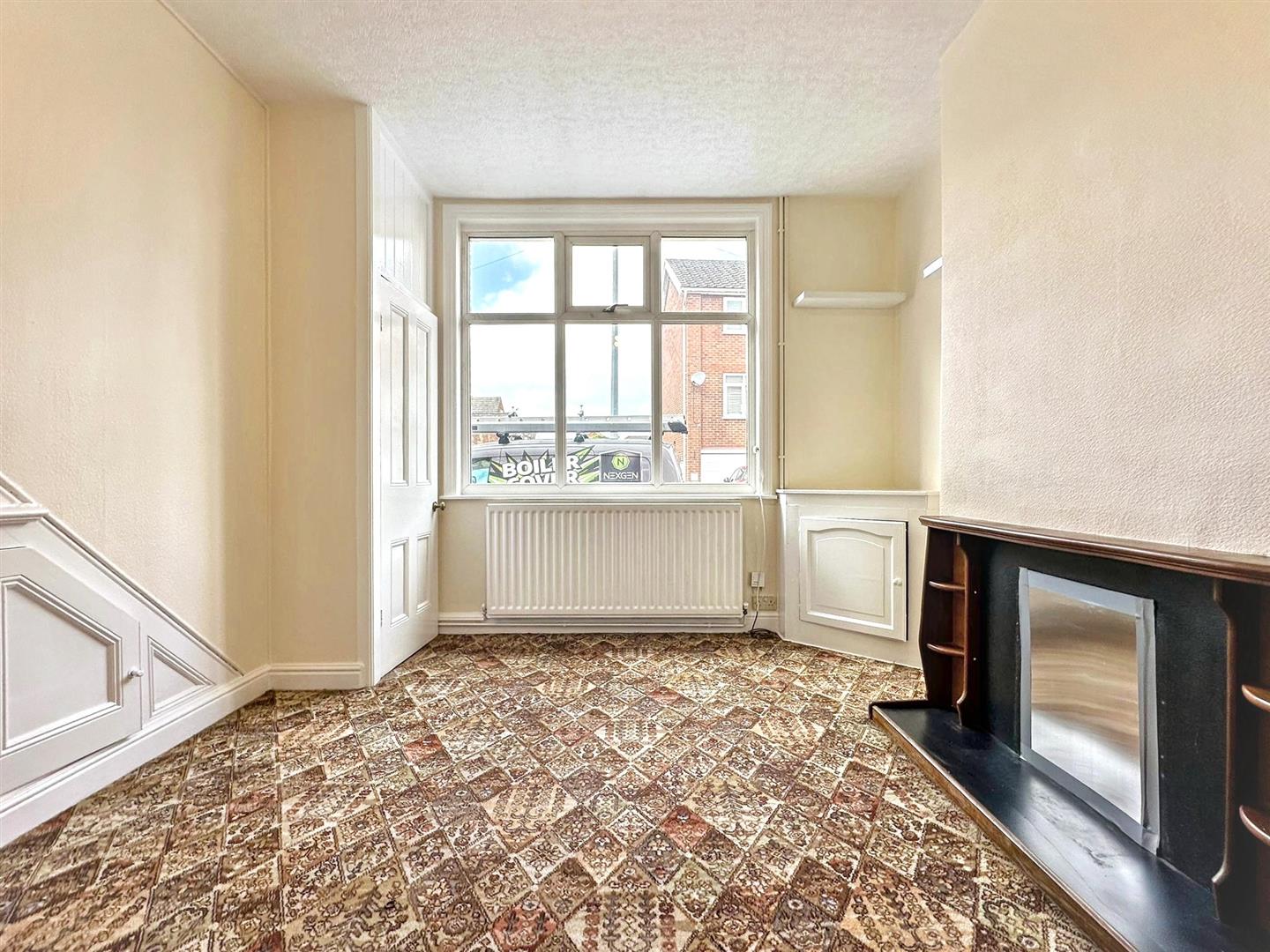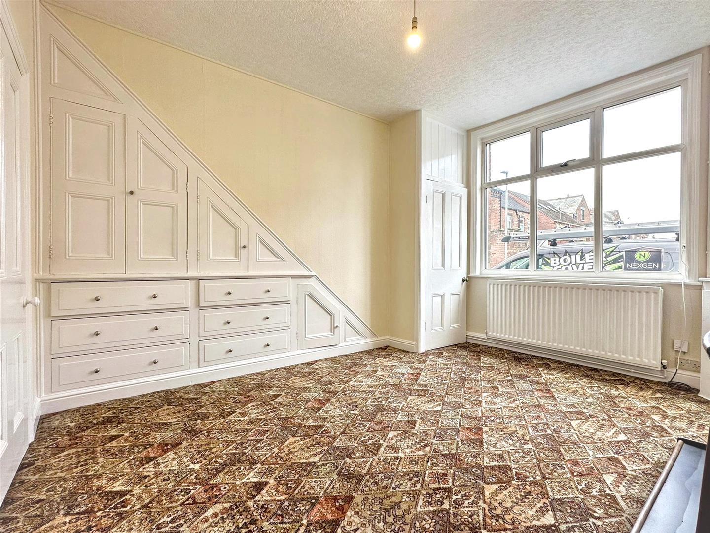 Carpet. Radiator. uPVC window to the front aspect. Built in storage under stairs. Ceiling light.