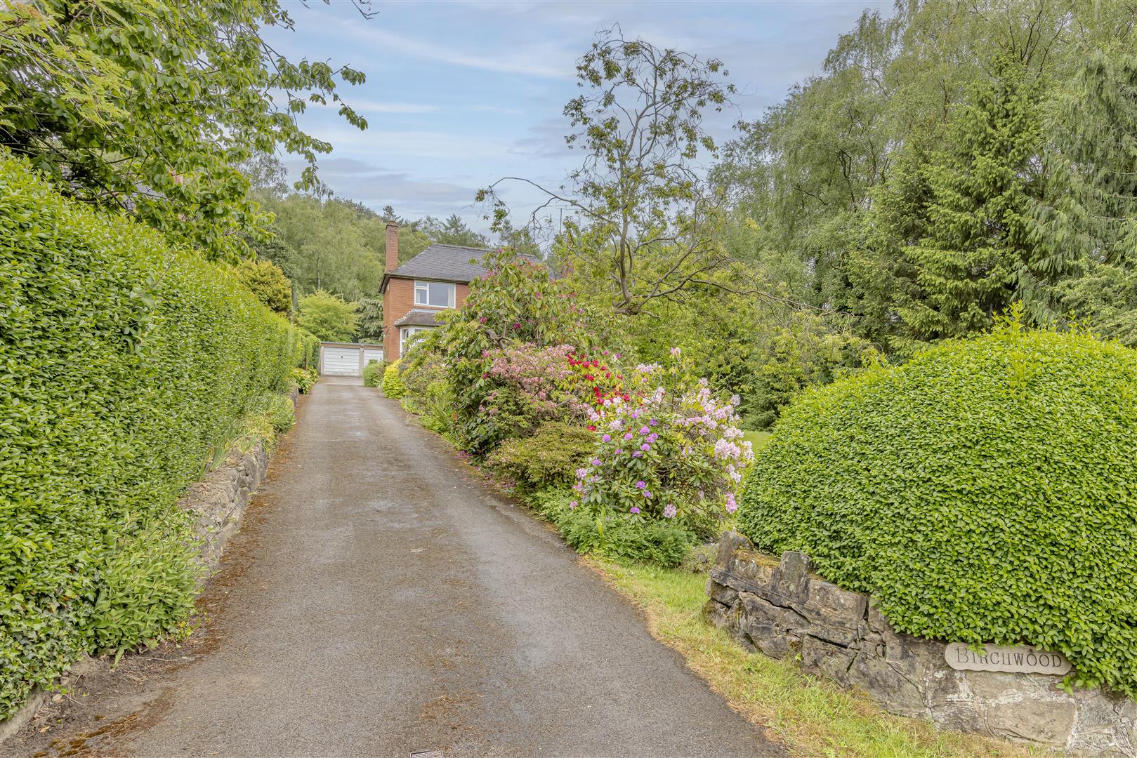 The property is approached via a long driveway that goes past the front garden, leading to gated access at the rear, which provides entry to the detached garage and additional parking space. The gardens are generously sized, occupying a substantial plot.
