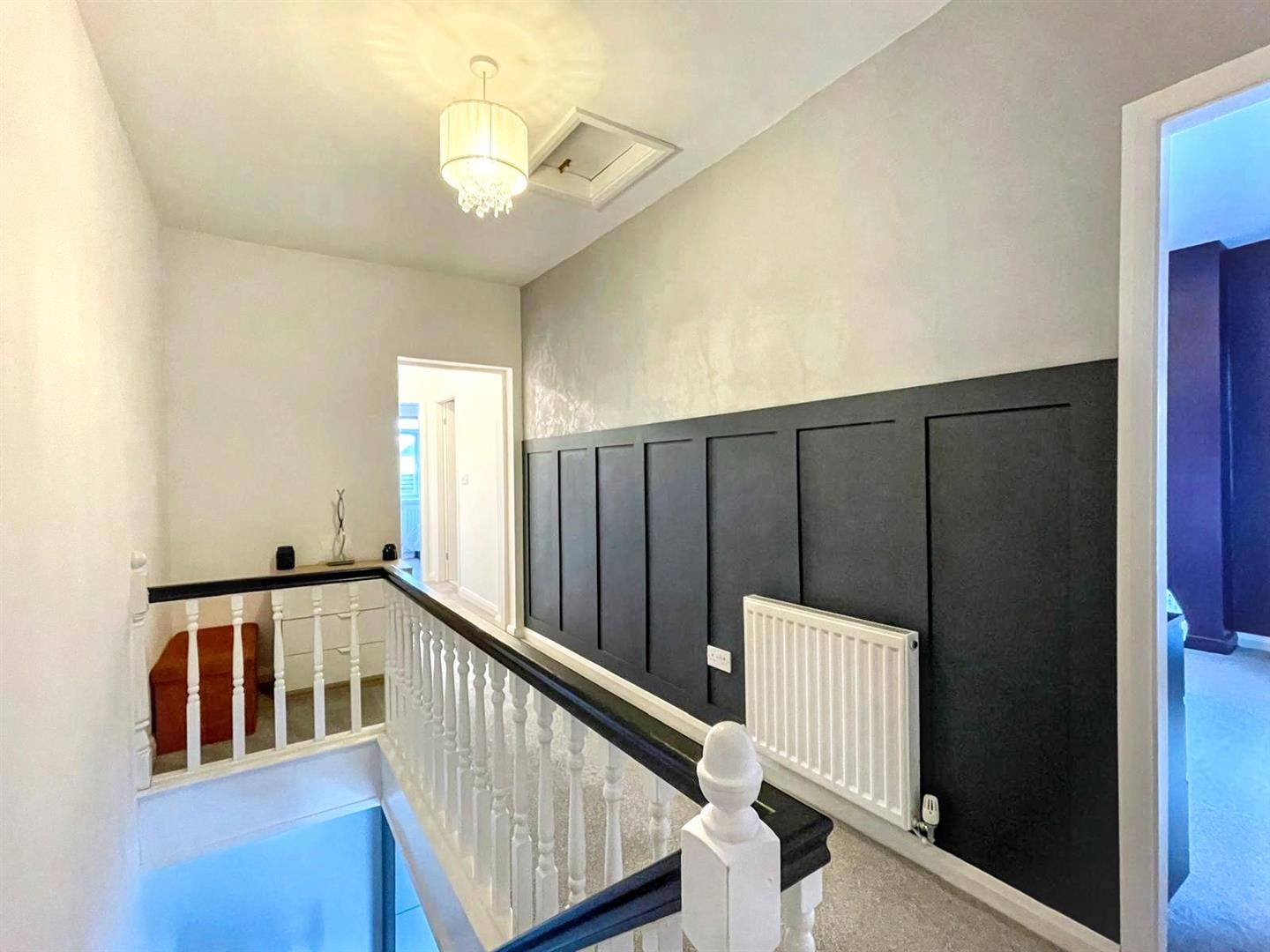Fitted carpet. Wall mounted radiator. Bespoke panelling. Ceiling light. Loft access.