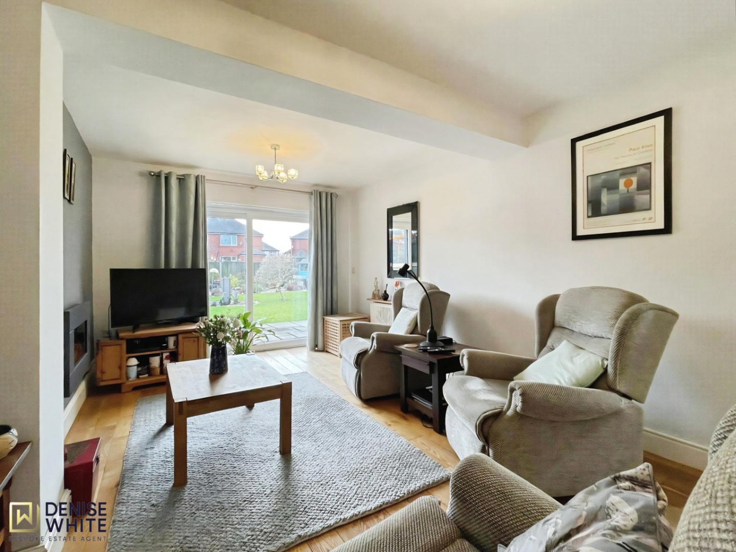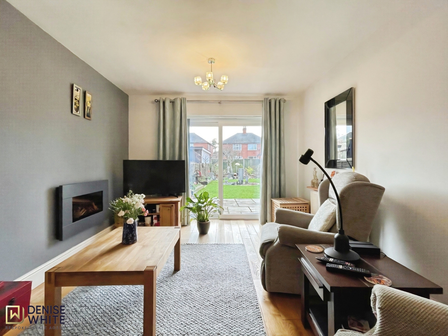 Wood effect flooring. Two wall mounted radiators. Electric fire. Sliding doors to the rear aspect. Two ceiling lights