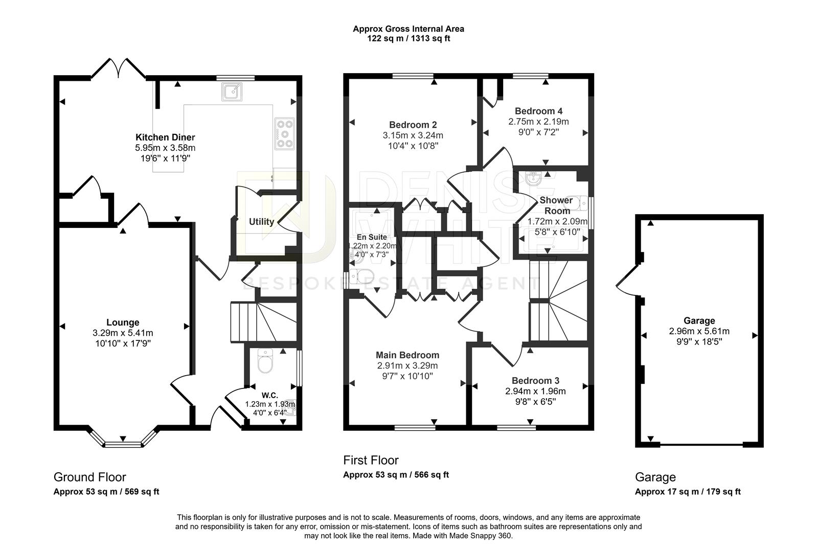 Please note that all areas, measurements and distances given in these particulars are approximate and rounded. The text, photographs and floor plans are for general guidance only. Denise White Estate Agents has not tested any services, appliances or specific fittings — prospective purchasers are advised to inspect the property themselves. All fixtures, fittings and furniture not specifically itemised within these particulars are deemed removable by the vendor.