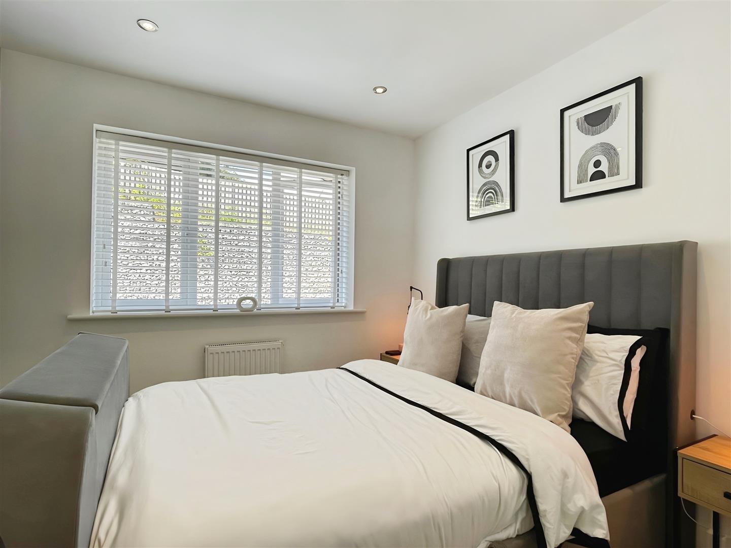 Fitted carpet. Wall mounted radiator. UPVC double glazed window to the rear aspect. Fitted wardrobes. Inset spotlights. Access into: –