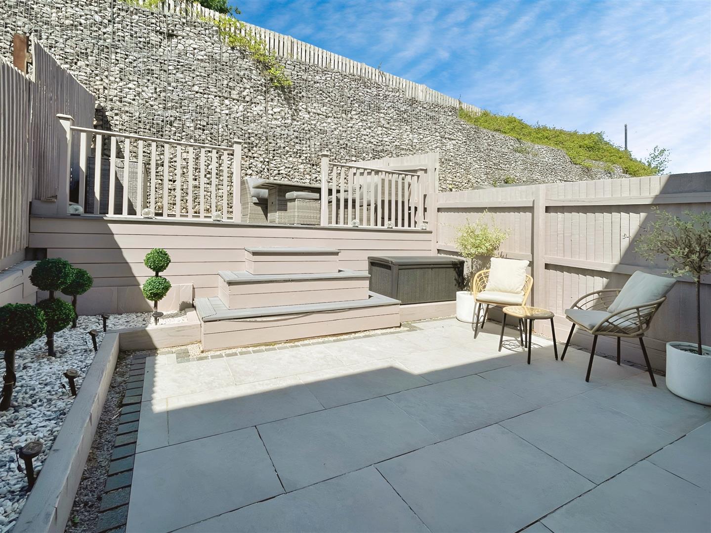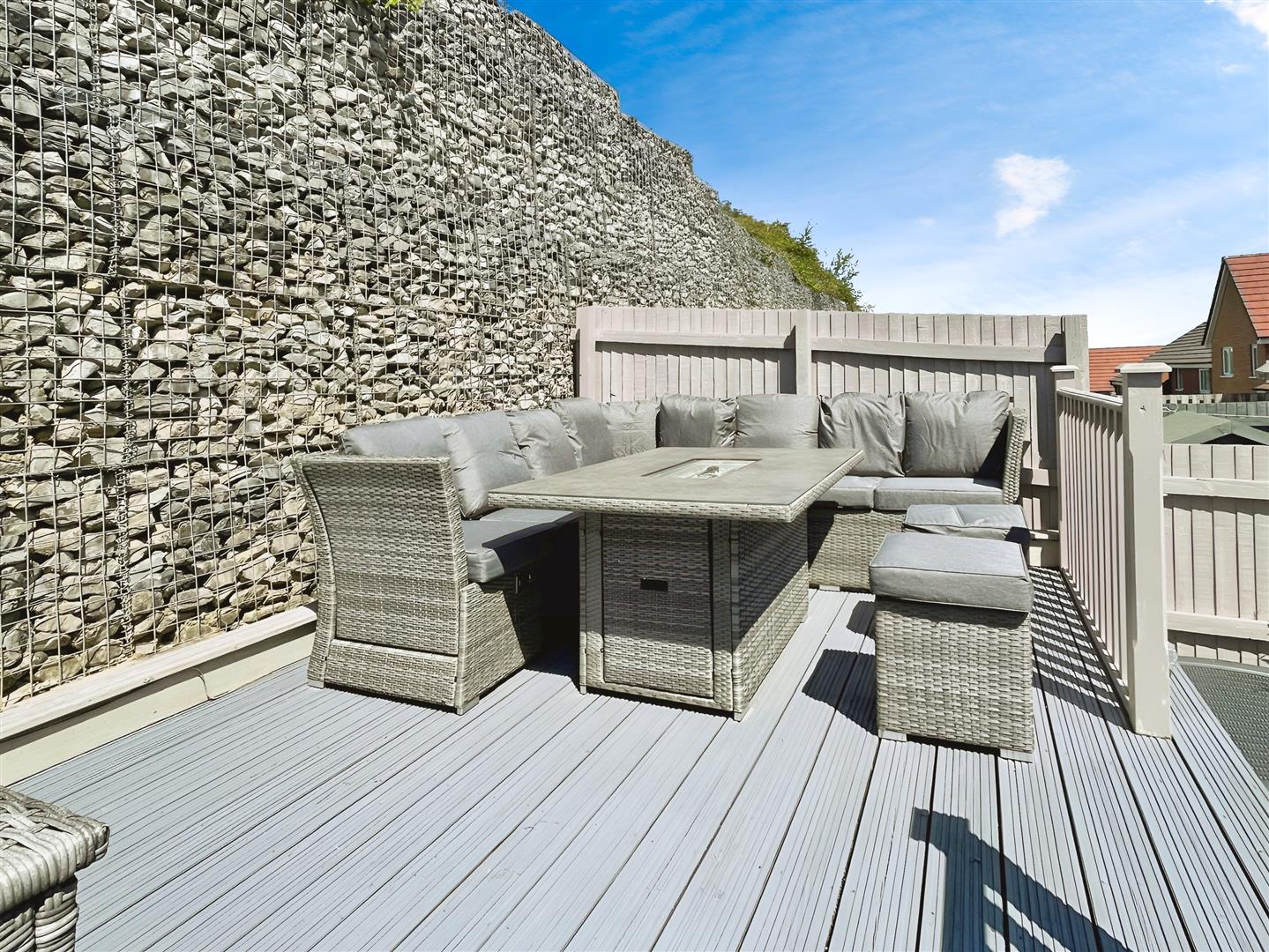 Externally, the property enjoys off-road parking for one vehicle and a private, low-maintenance garden to the rear. The outdoor space features a smart tiled patio area, leading to a raised deck—ideal for summer barbecues, entertaining, or simply relaxing in the sun.
