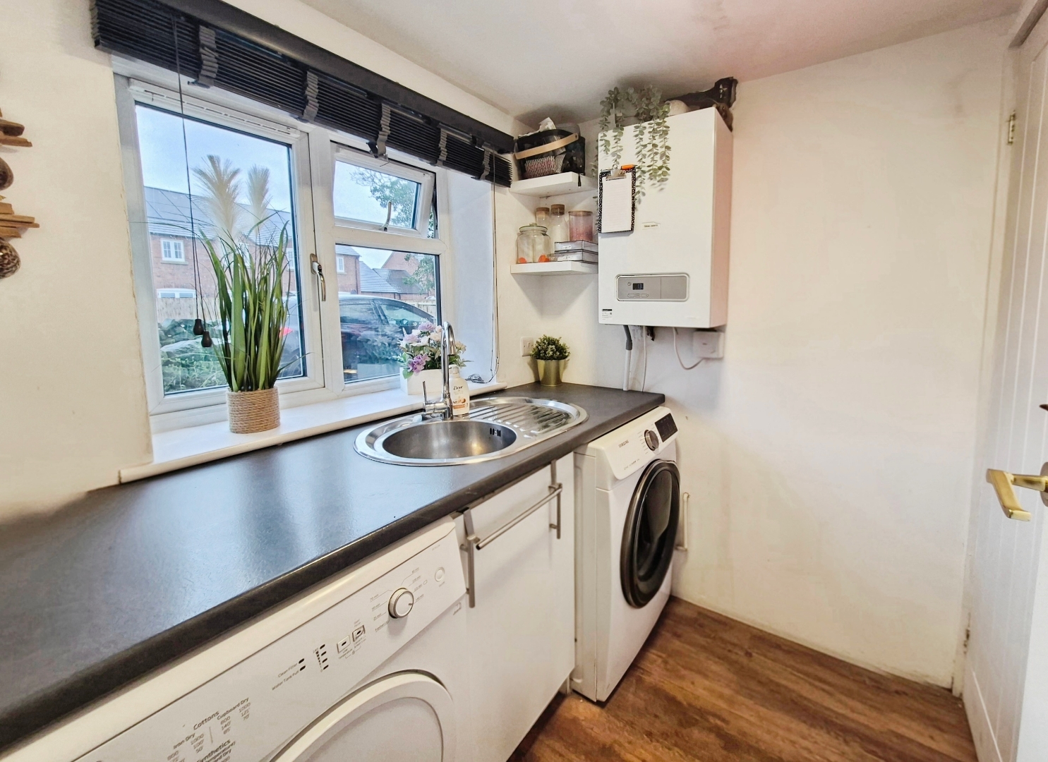 Fitted with a stainless steel sink and draining unit with mixer tap with worksurface sitting over the plumbing for an automatic washing machine and space for a condensing tumble dryer. Wall mounted 'Glowworm' gas combination boiler. Vinyl flooring. uPVC window to the front aspect. Ceiling light. Door leading into:-