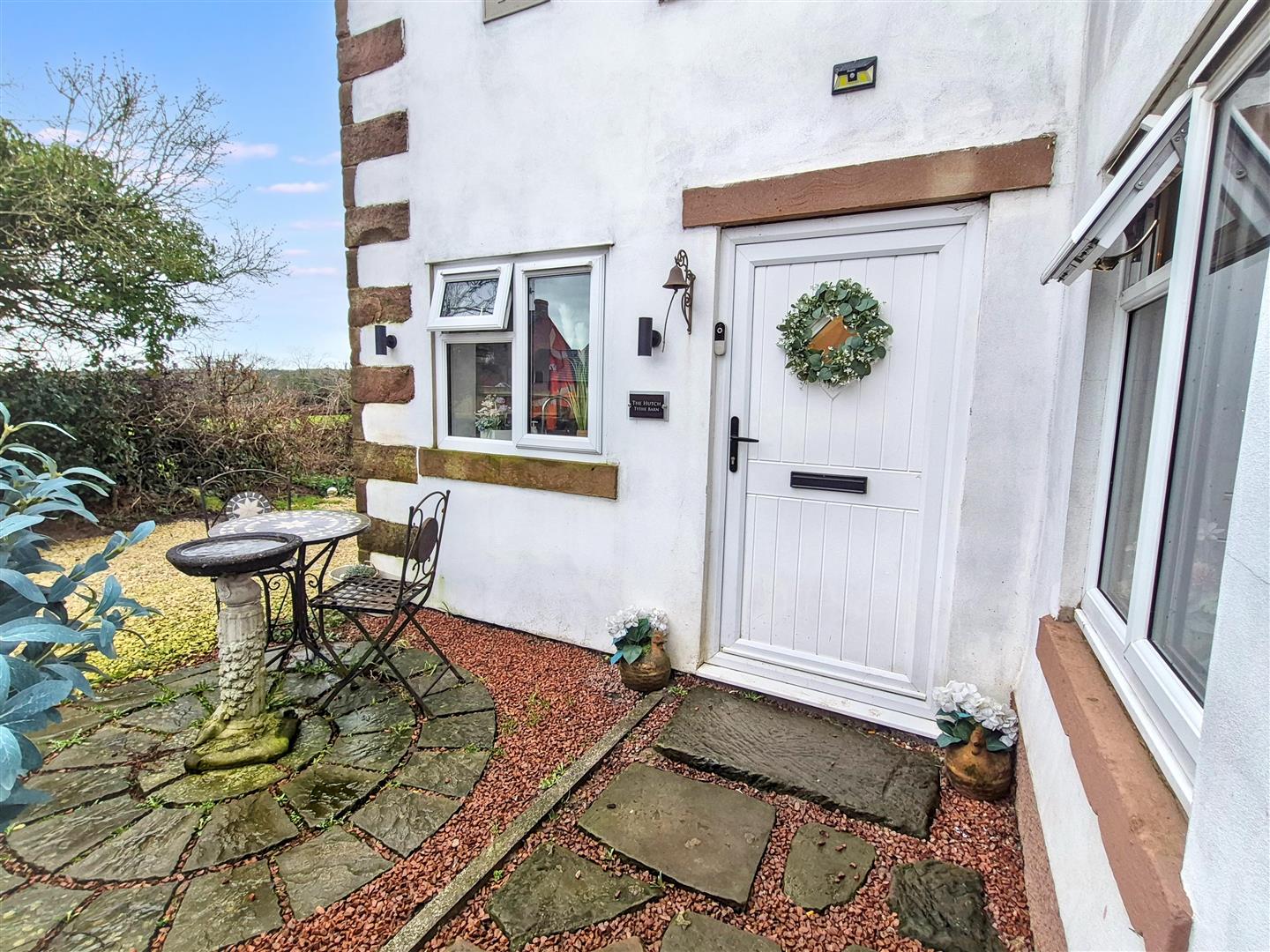 The Hutch benefits from a private and enclosed rear garden, mainly laid to lawn, which enjoys a high degree of privacy and borders open fields. French doors from the living areas provide seamless indoor-outdoor flow, making it ideal for relaxing, entertaining, or family activities. A small forecourt lies to the front, and the property is approached via a shared driveway, which in turn leads to a private driveway providing off-road parking. The garden perfectly complements the home’s mix of period character and contemporary living.