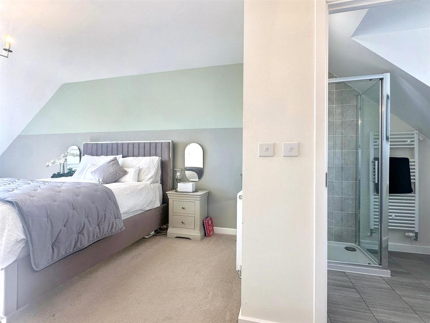 The first floor comprises three well-proportioned double bedrooms, offering flexibility for family living, guests or home working. Bedroom two benefits from built-in wardrobes and its own en suite shower room, making it an ideal guest suite. Bedrooms three and four are both comfortable doubles, Bedroom Three currently being used as a second lounge area, served by a modern family bathroom positioned on this level.