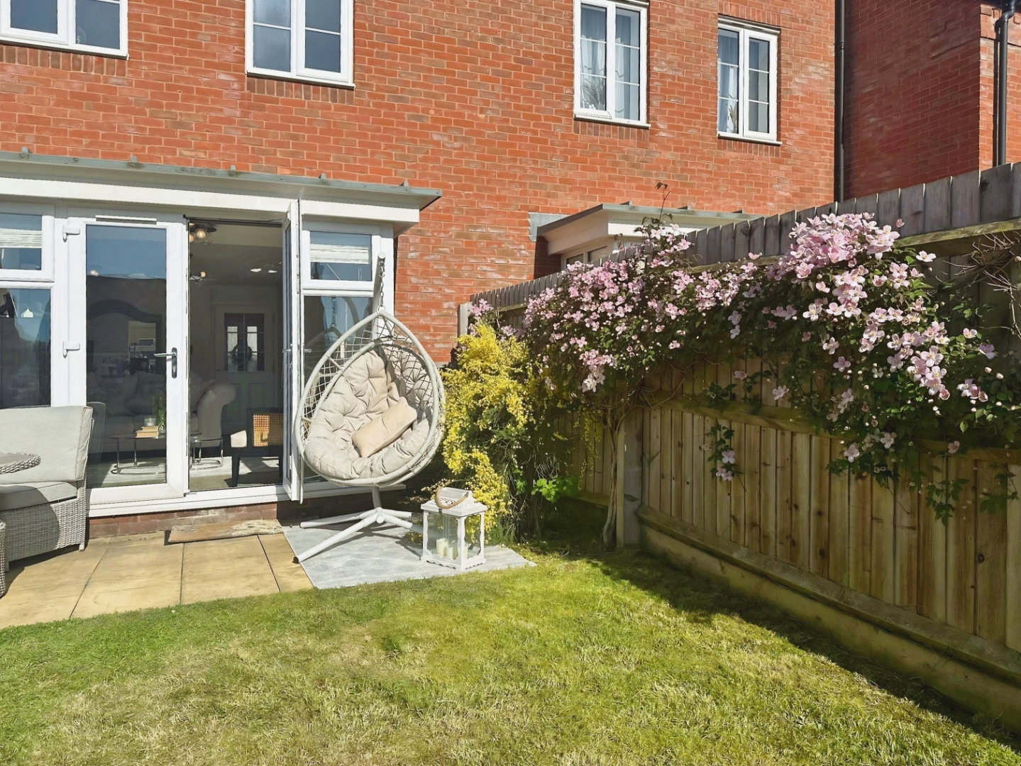 The South facing rear garden is fully enclosed and enjoys a good level of privacy, making it ideal for both relaxing and entertaining. Predominantly laid to lawn, the space is complemented by a paved patio area directly off the rear doors, perfect for outdoor seating and dining. Timber fencing defines the boundaries, while raised planters and established greenery add structure and visual interest. The garden is well-proportioned, offering a balance of usable lawn space and sociable outdoor living areas, all benefiting from a bright and open aspect.