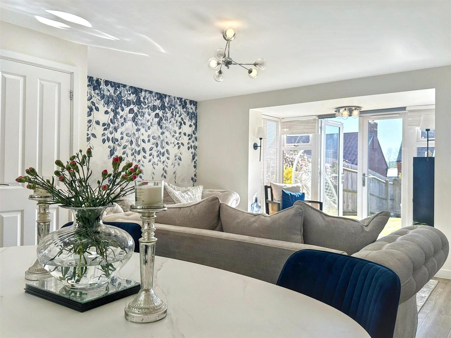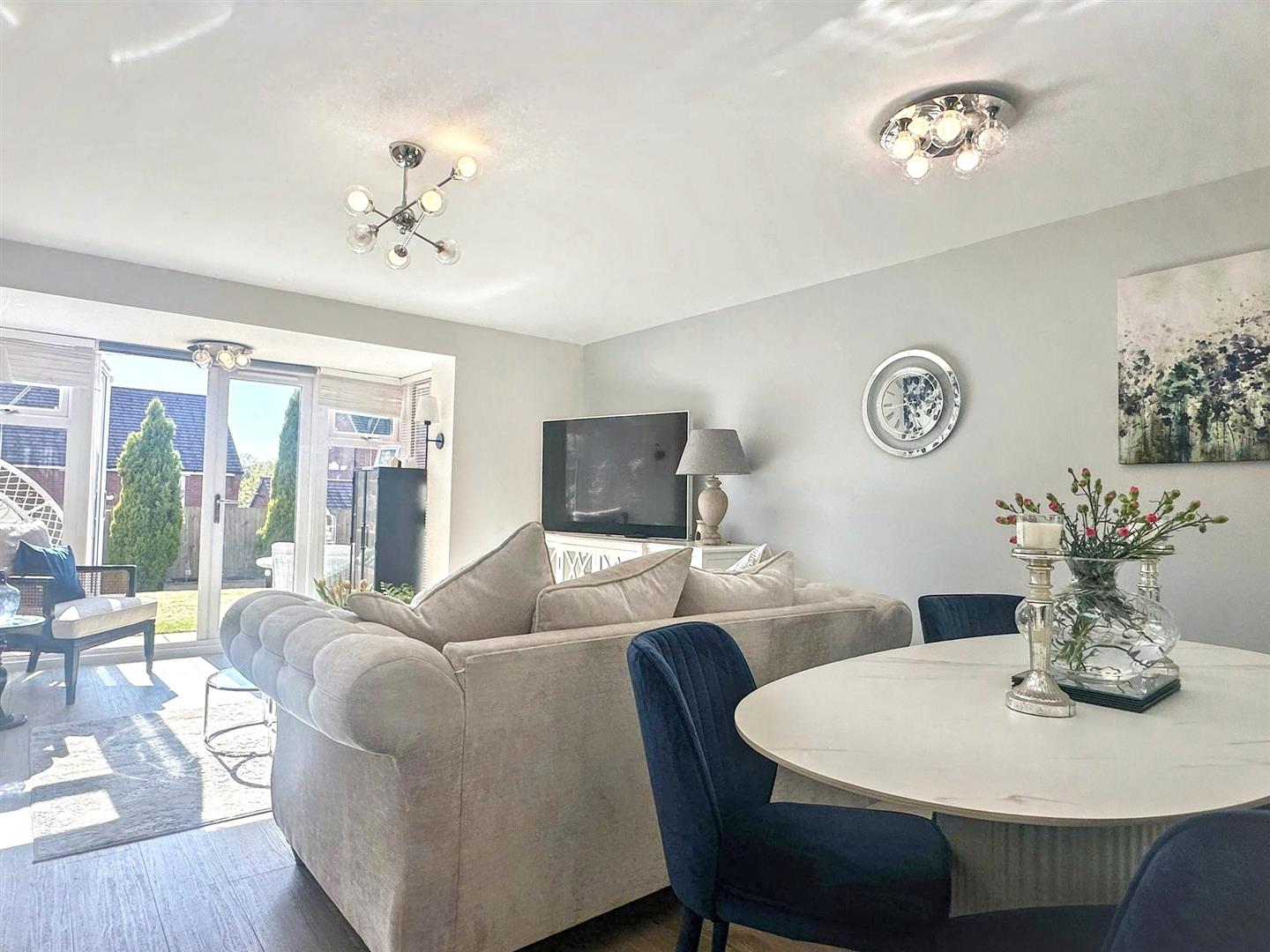 The ground floor opens with a welcoming entrance hallway, providing access to a convenient downstairs WC and leading through to a well-appointed kitchen, fitted with a range of units and worktop space suited to everyday use. To the rear, a spacious lounge diner forms the heart of the home, offering ample room for both relaxation and entertaining, with double doors opening directly onto the garden and allowing for plenty of natural light throughout the space.