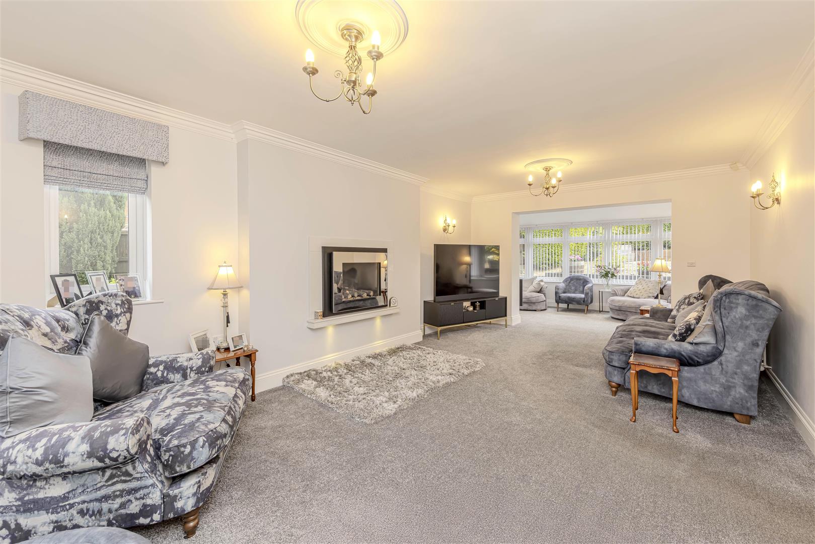 Carpet. Two radiators. Inset log burning effect gas fire. uPVC bay window to the front aspect. uPVC window to the side aspect. Three wall lights. Two ceiling lights. Opening into: –