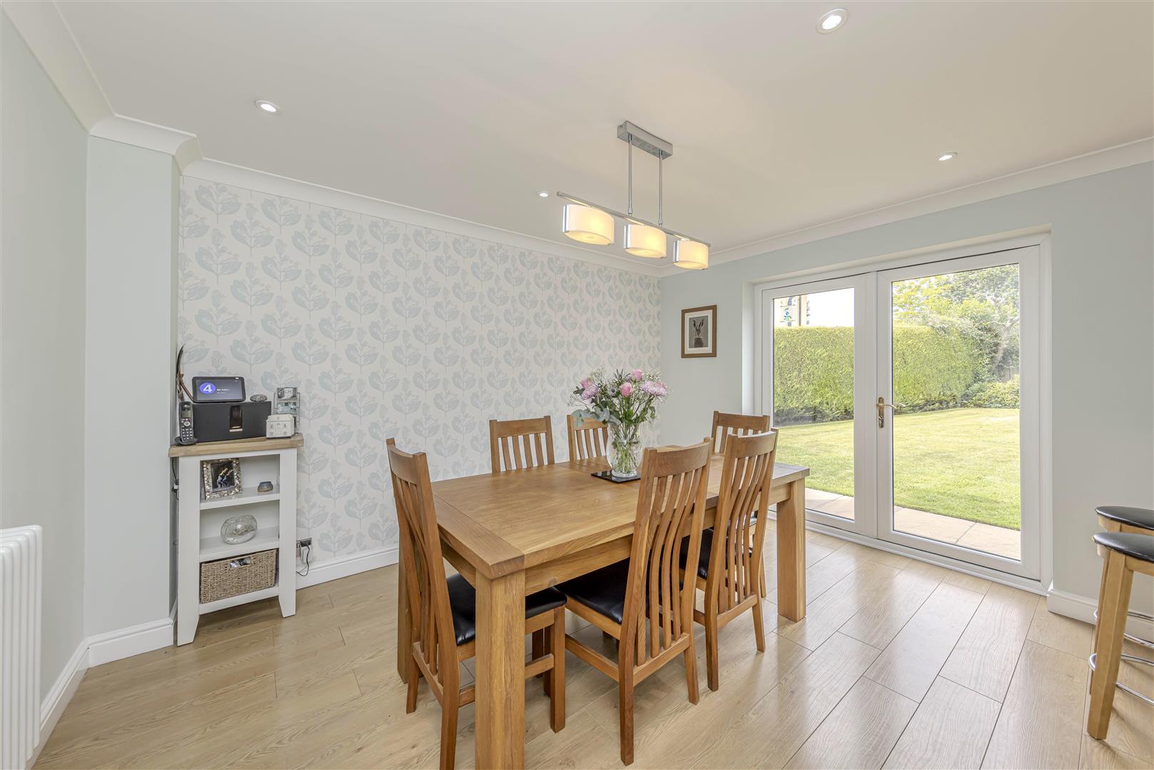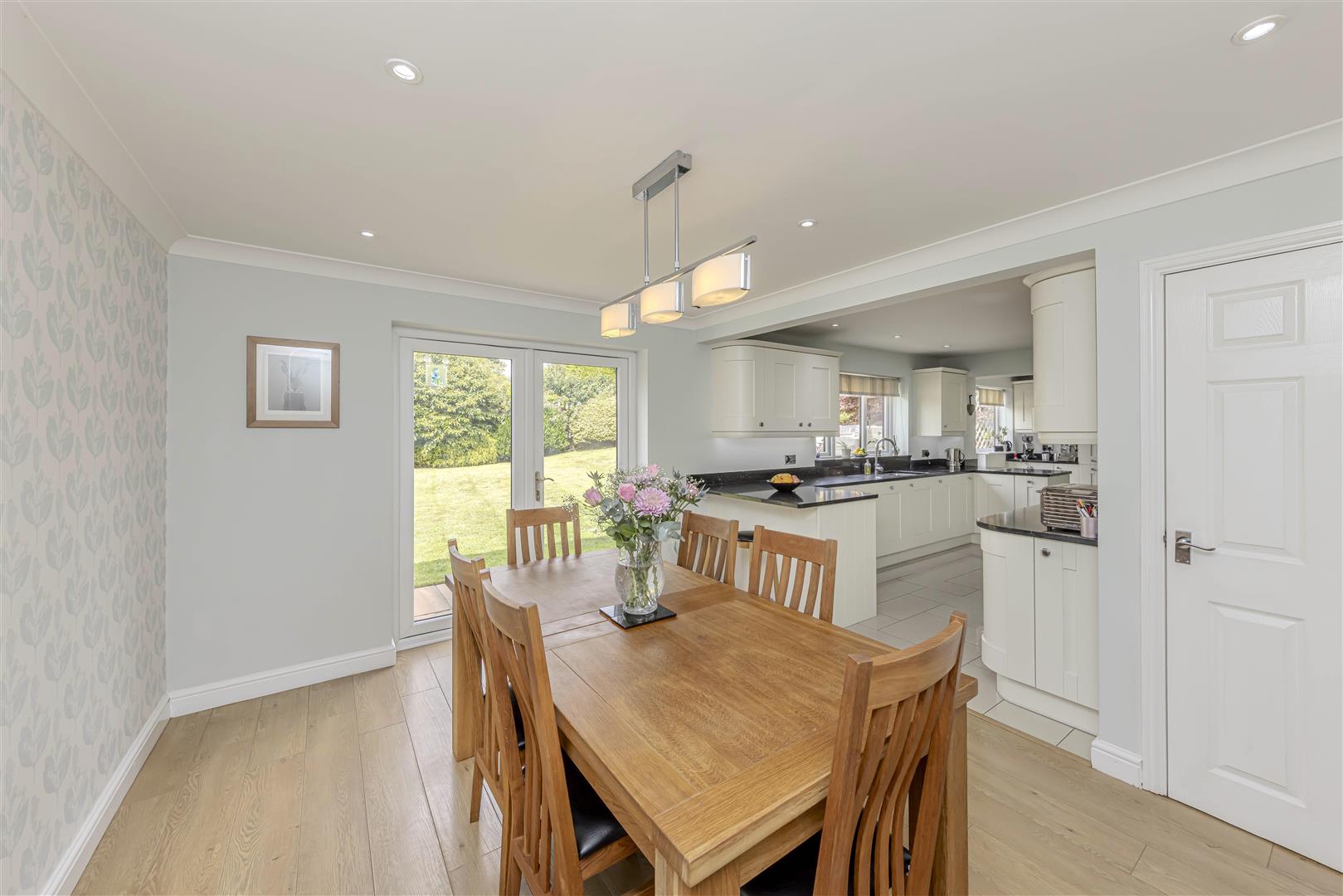 Fitted with a solid wood, Laura Ashley design kitchen comprising of a range of wall and base units with granite work surfaces over incorporating an inset one and a half bowl Franke sink and drainer unit with mixer tap. Integrated fridge, freezer and dishwasher. Space for a multi fuel range style cooker with extractor hood over (the vendors are willing to negotiate including the range cooker in the sale). Laminate flooring to the dining area. Tiled flooring to the kitchen area. Traditional style wall mounted radiator. Traditional style wall mounted upright radiator. Two uPVC windows to the rear aspect. Composite stable door leading to the rear garden. uPVC French doors leading to the rear garden. Ceiling light and spotlights. Opening into: –