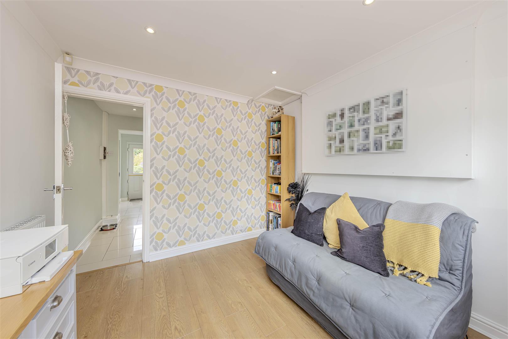 Composite entrance door to the front aspect. Laminate flooring. Radiator. Stairs off to the first floor. Under stairs storage cupboard. Ceiling light. Doors leading into: –