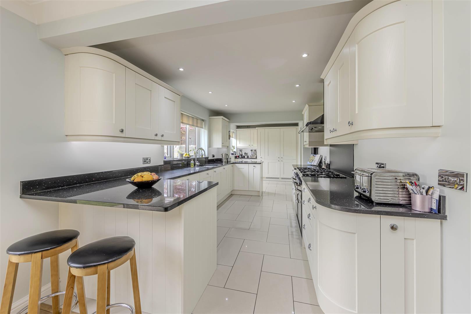 On the ground floor, an Entrance Hall welcomes you to the property, from which stairs lead to the First Floor and doors provide access to the Downstairs WC, an impressive Breakfast Kitchen and spacious Lounge. The Lounge is positioned to the front aspect and features a cosy log-burning stove—perfect for family evenings in. The heart of the home is a fabulous breakfast kitchen which spans the rear of the property, beautifully appointed with a Laura Ashley design and sleek granite worktops, and French Doors which lead directly to the rear garden, creating a wonderful space for cooking and entertaining. Beyond the Kitchen you will find a practical utility room and a dedicated office ideal for home working.
