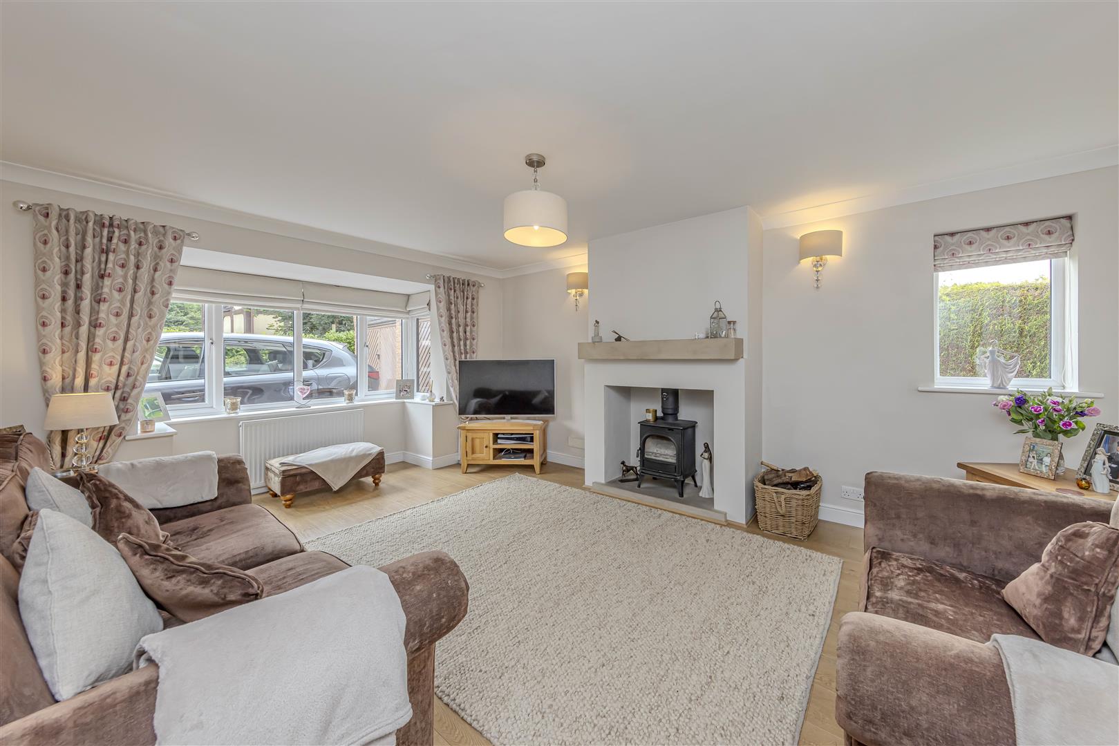 Laminate flooring. Two radiators. uPVC box bay window to the front aspect. uPVC window to the side aspect. Multifuel stove set on a stone hearth with a stone mantle. Two wall lights. Ceiling lights.