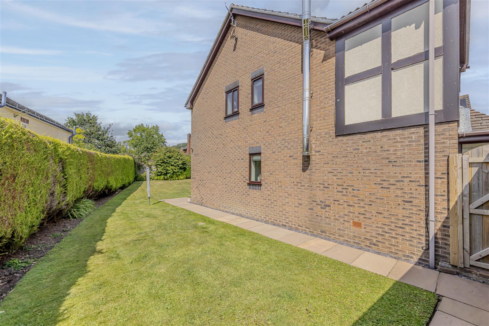 To the front aspect, the property is approached over a block paved driveway which provides ample off road parking and leads to a detached Double Garage. Newly installed electric car charging point. Gated access to both sides of the property lead to the rear garden.