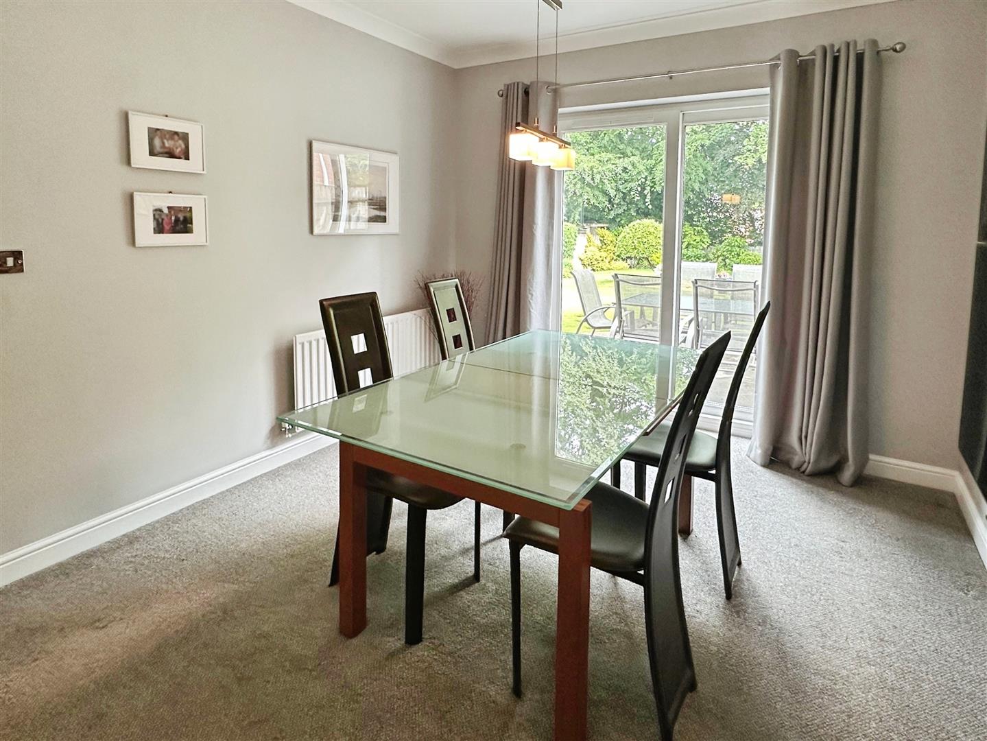 Carpet. Radiator. Wall mounted display cupboards with inset lighting. Coving to the ceiling. Ceiling light. uPVC patio doors leading to the rear garden. Door leading into: –