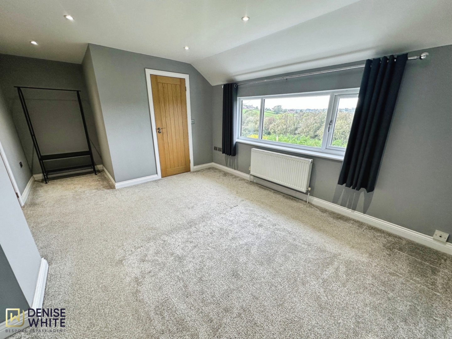 Carpet. Radiator. uPVC window to the rear aspect. Ceiling spotlights. Door leading into: –