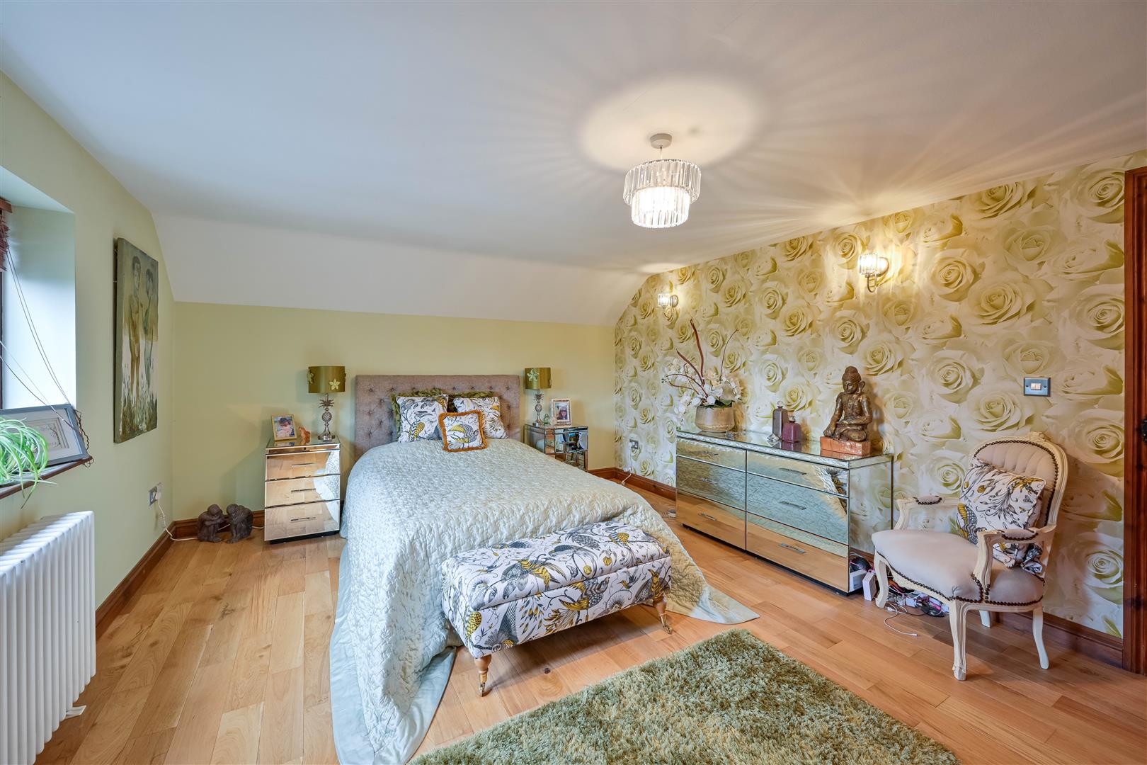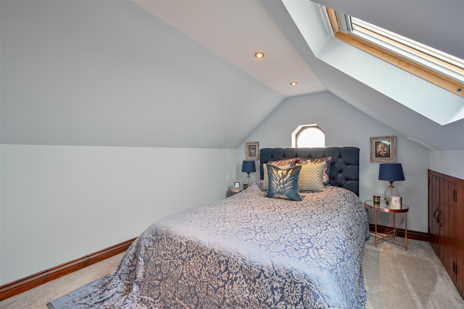 Feature gable window, radiator, eaves storage, sky light, inset spotlights.