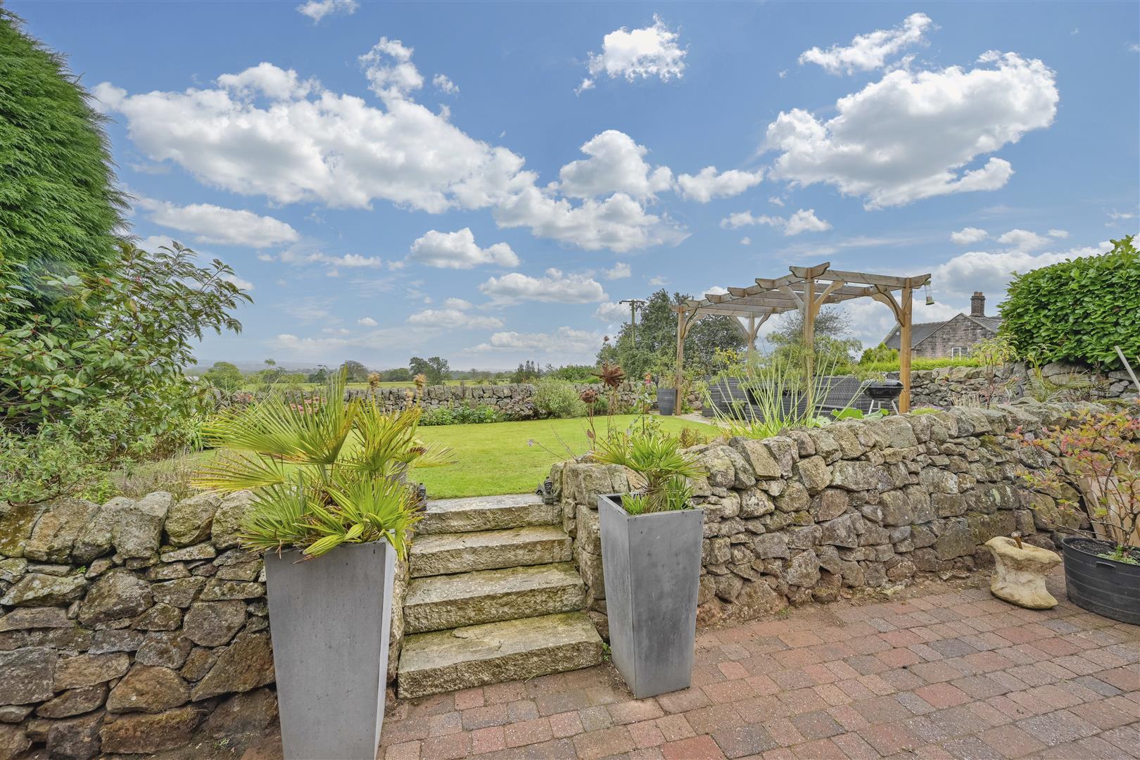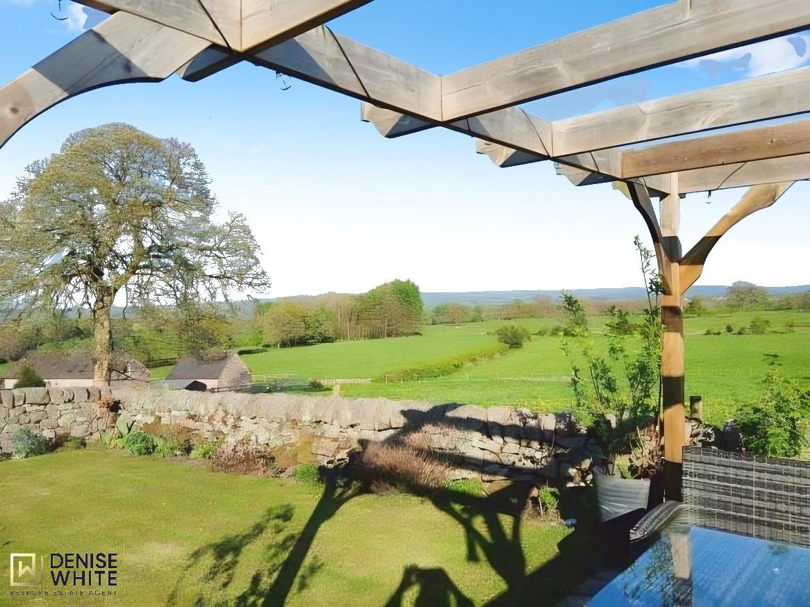 The rear garden backs onto open fields, offering picturesque views of the surrounding countryside and extending towards the Staffordshire Moorlands.