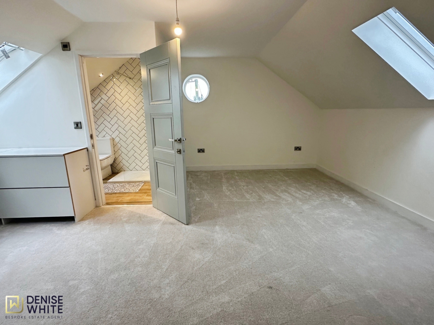 Carpet. Radiator. Velux windows to the front and rear aspects. Circular uPVC window to the side aspect. Ceiling light. Door leading into: –