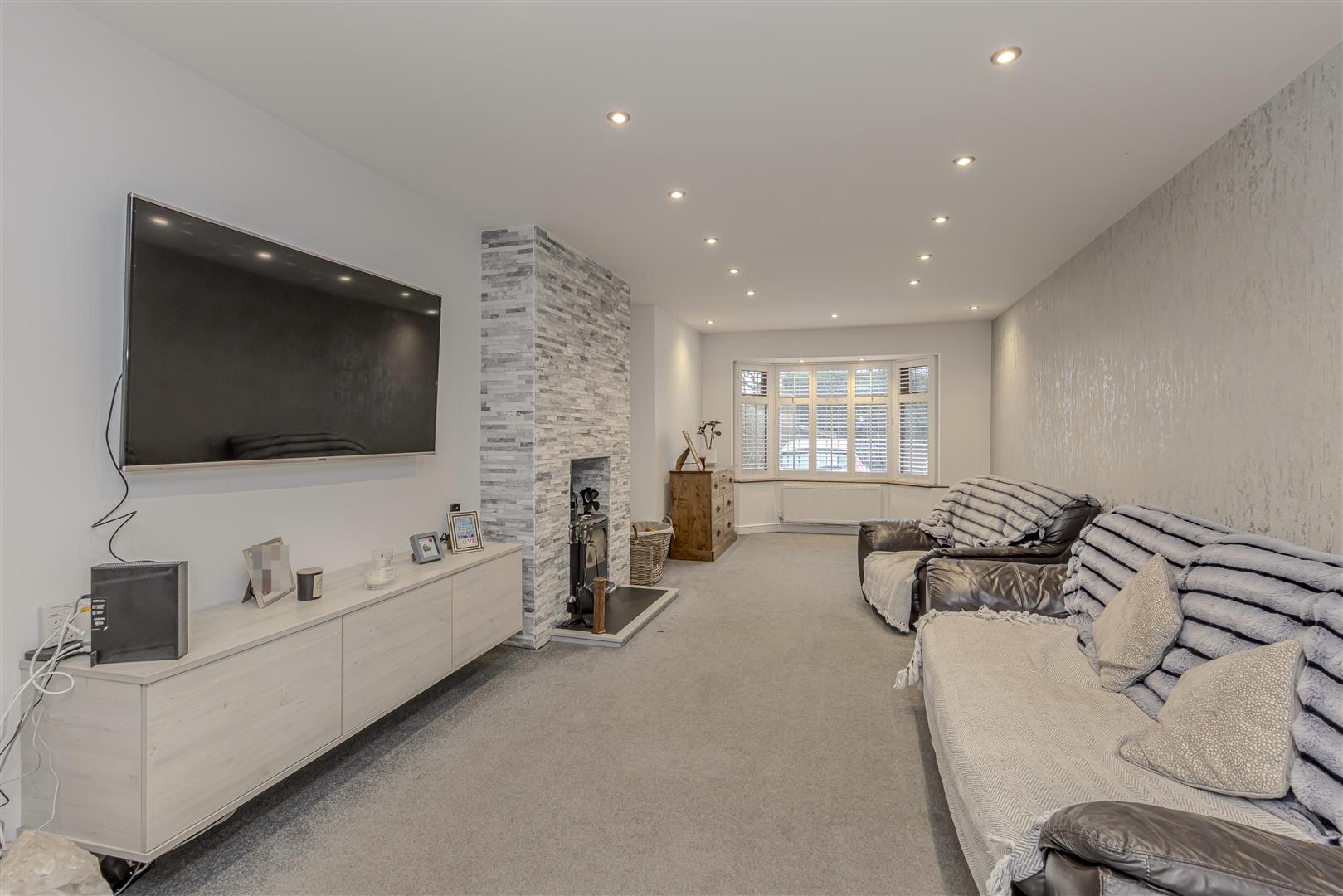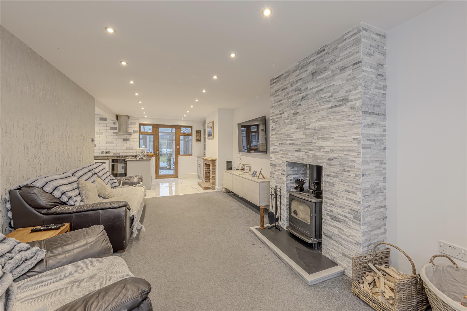 Fitted carpet. Wall mounted radiator. Fireplace with log burner. UPVC double glazed Bay window to the front aspect. Inset spotlights.