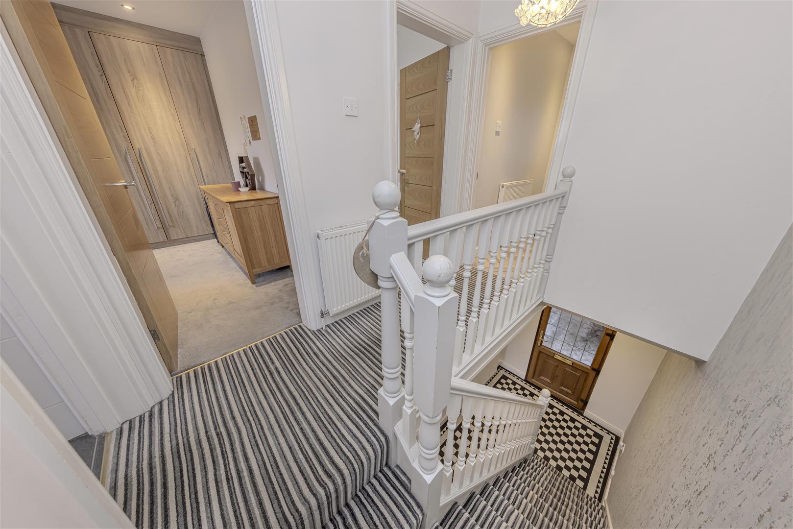 Fitted carpet. Wall mounted radiator. Access to all first floor accommodation. Ceiling light. Doors leading into:-